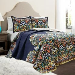 Best Pirce ???? Lush Decor French Country Geo Ruffle ???? Skirt Bedspread Blue 3 Pc. Set ????