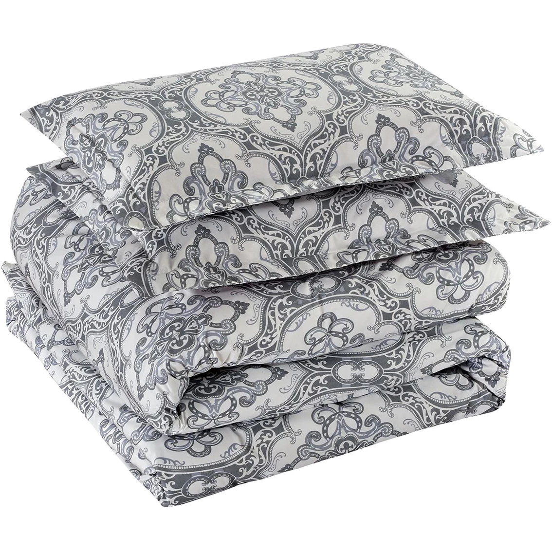 Set incudes 1 duvet cover (it’s like a pillowcase for your existing comforter) with hidden button closure and 2 coordinating shams, each with a framing 2-in. flange. Easy care, machine wash and dry. Model: 1460FQDAM.