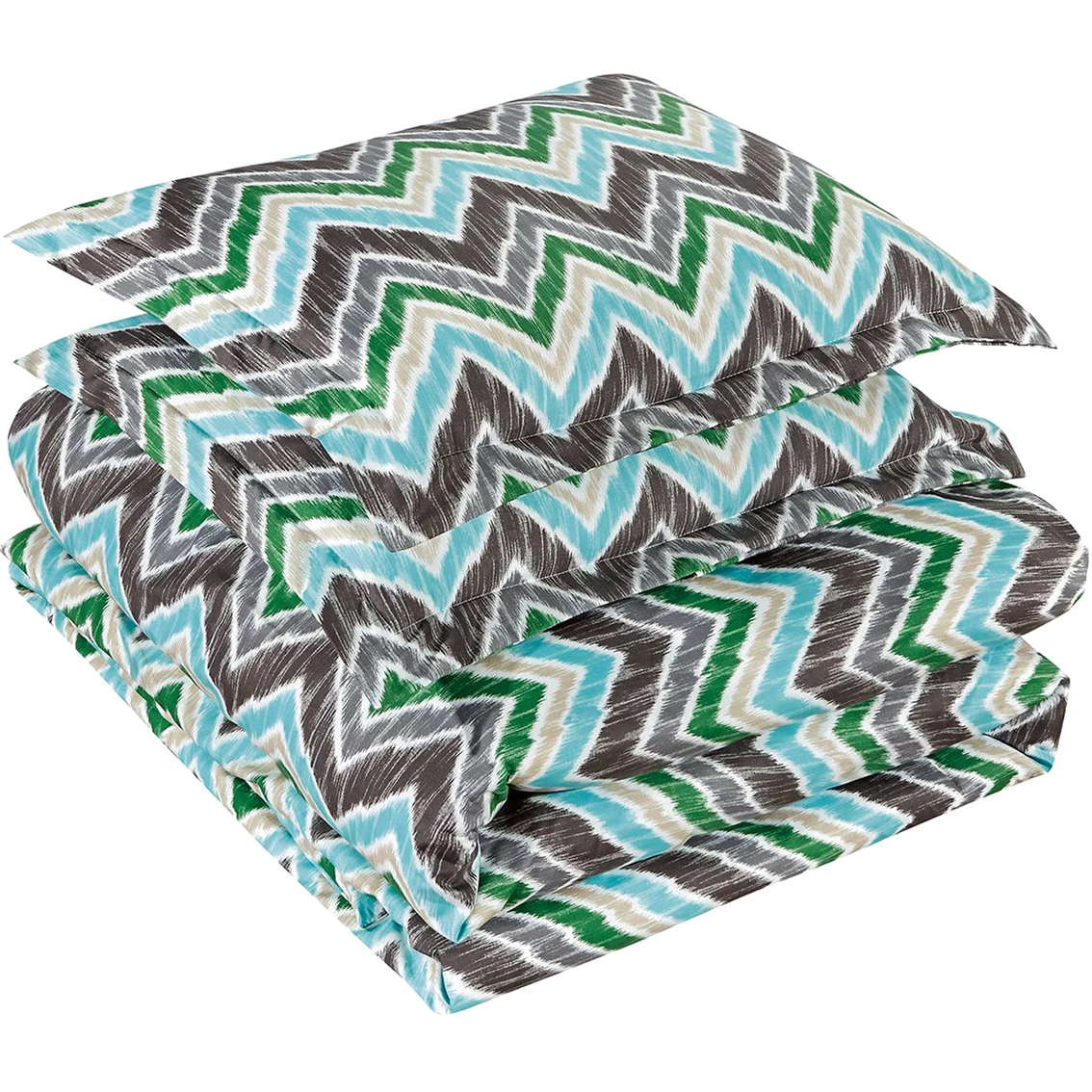 Set incudes 1 duvet cover (it’s like a pillowcase for your existing comforter) with hidden button closure and 2 coordinating shams, each with a framing 2-in. flange. Easy care, machine wash and dry. Model: 1460FQDAR.