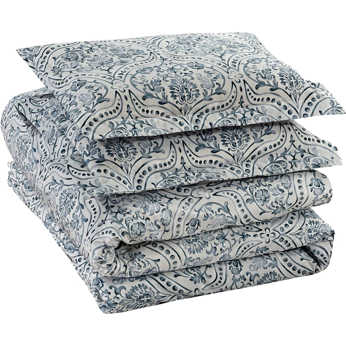 Set incudes 1 duvet cover (it’s like a pillowcase for your existing comforter) with hidden button closure and 2 coordinating shams, each with a framing 2-in. flange. Easy care, machine wash and dry. Model: 1460FQMAD.