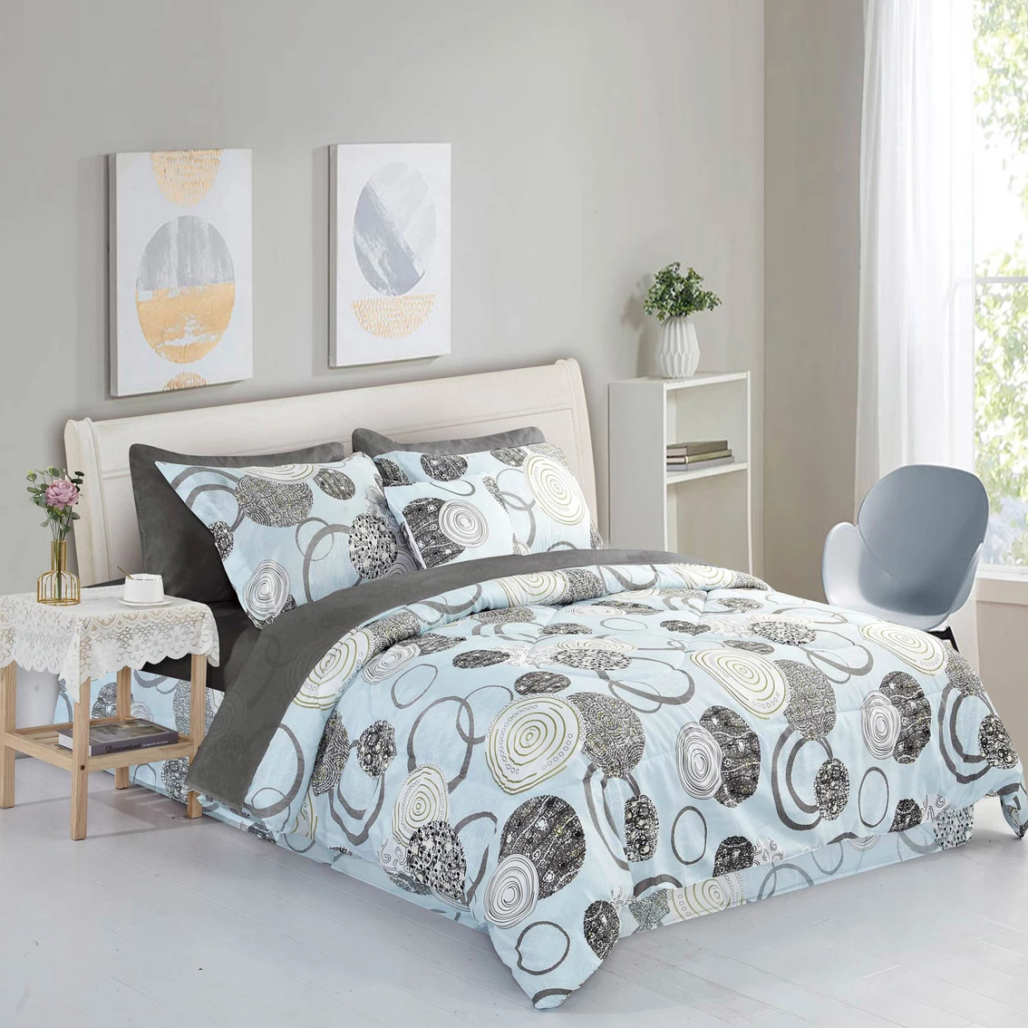 – 1 queen comforter 86 in. x 86 in.