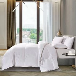 Feel as if you are staying in a luxurious hotel each night with Blue Ridge 1000 Thread Count Egyptian Cotton Cover European Goose Down Comforter. In addition, the Microban antimicrobial technology infused into the fabric during the manufacturing process adds a level of protection against the growth of stains and odor-causing bacteria, mold, and mildew so you can enjoy a cleaner, fresher, and more durable comforter. Style: 21214.