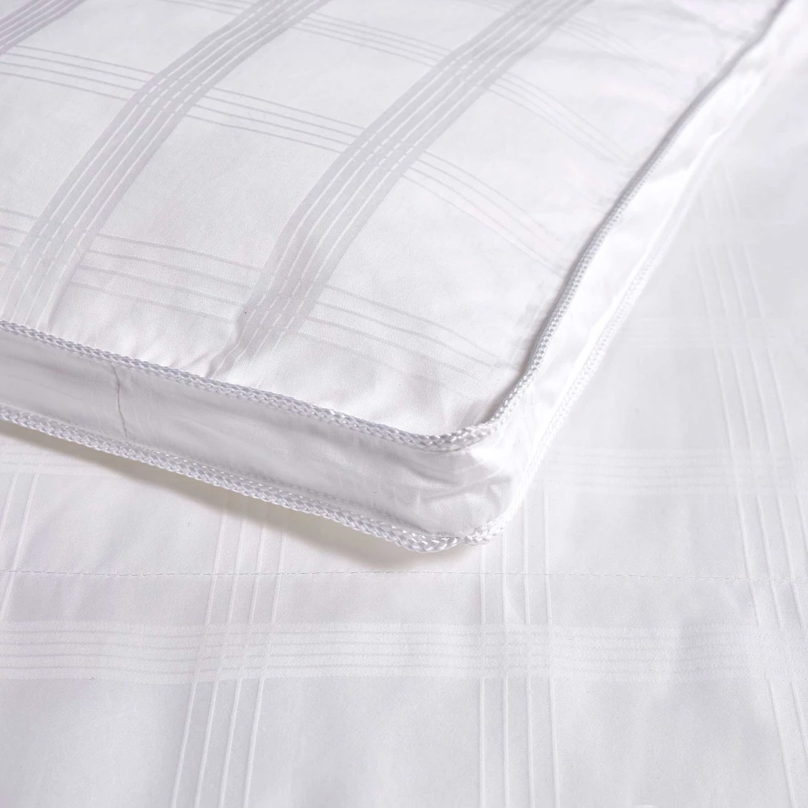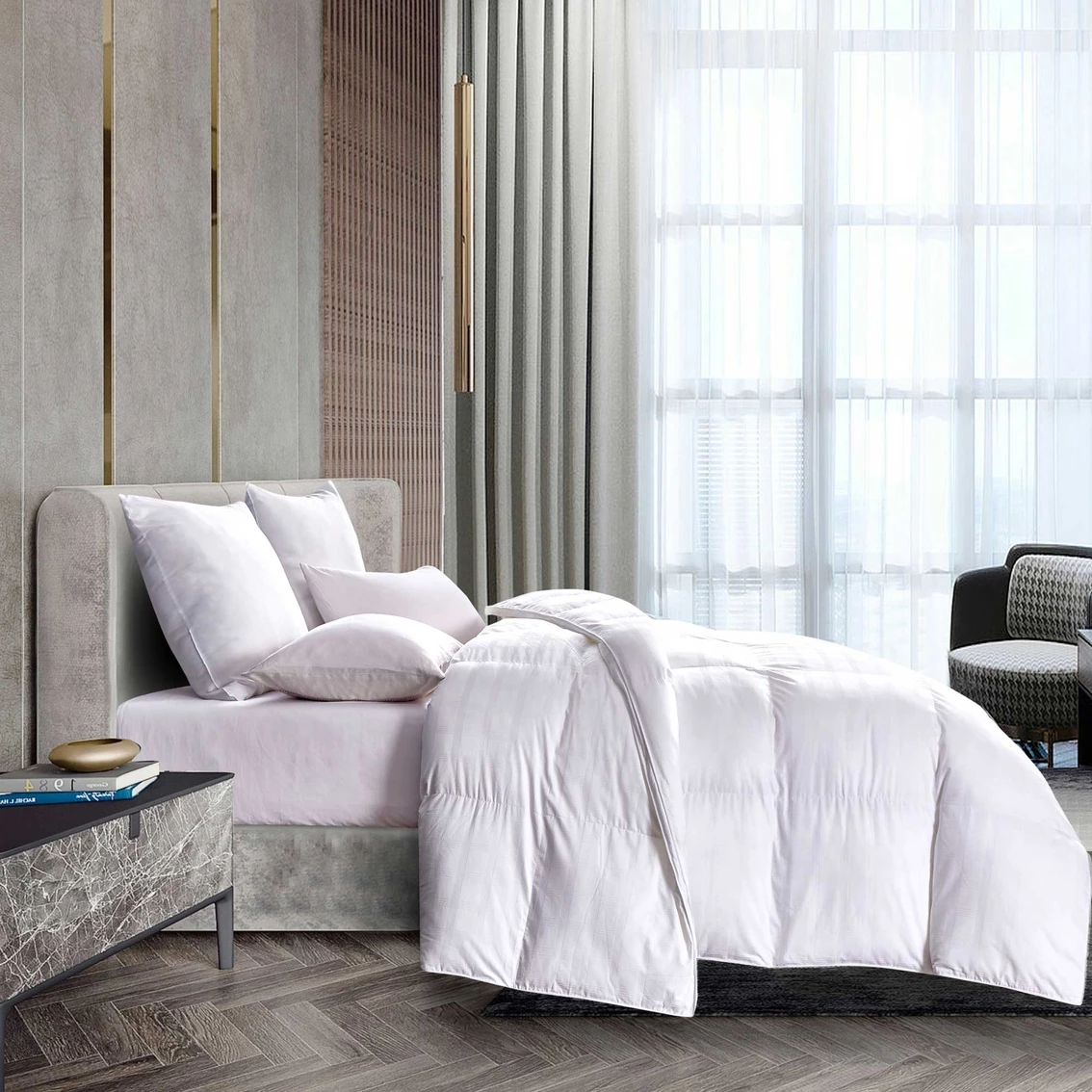 Airy, soft and breathable. Enjoy the soothing comfort of this plush comforter, covered in 600-thread-count, windowpane print cotton. It features a 14 in. baffled box construction, double silky piping and a 1 in. gusset which keeps the polyester fill from shifting. Filled with hypoallergenic Duraloft polyester fibers.