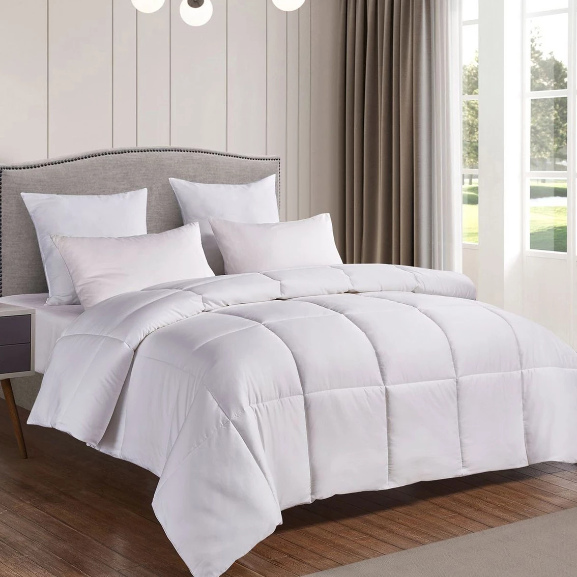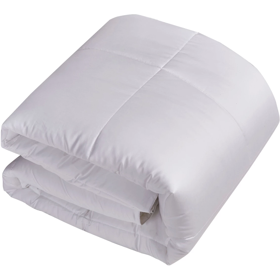Get cozy with the 700-thread-count sateen cotton cover. This down-alternative comforter is crafted with a 14 in. end-to-end sewn-through box construction which prevents the polyester fiber fill from shifting. Self piped and filled with hypoallergenic polyester fiber.