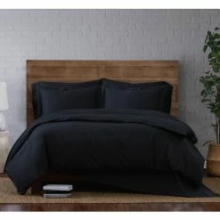 The amazingly soft 100% cotton fabric of this Classic Cotton 3 pc. Duvet Set from Brooklyn Loom provides you with the soft, natural feel you want for your home. The set includes one duvet cover and two standard shams. This item is machine washable, but please be sure to use appropriate sized machinery to avoid any excess wear on the items. This item is imported from India. Model: DCS3158BKFQ-00.