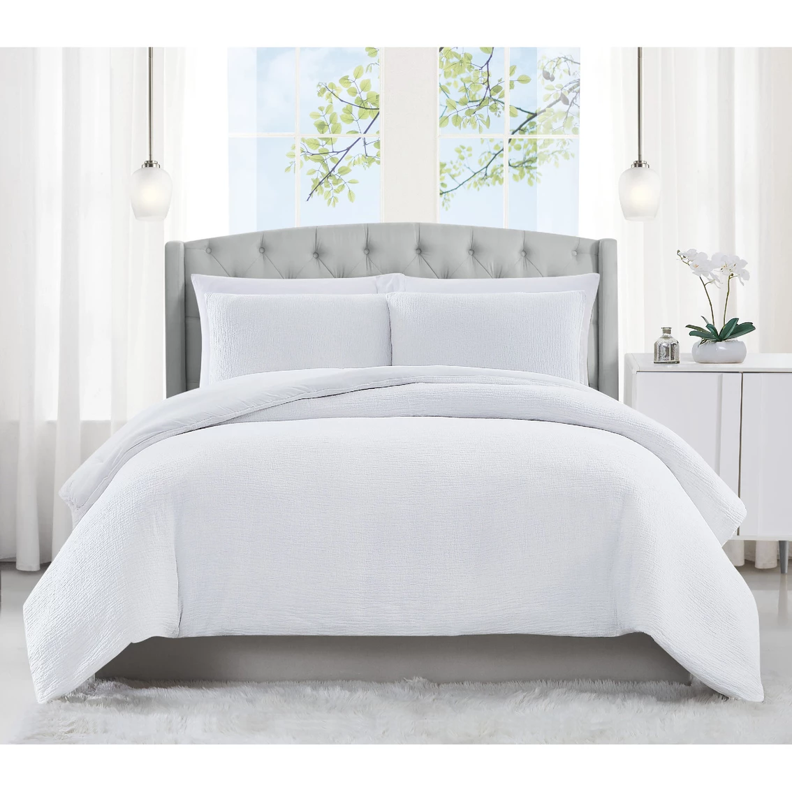 Charisma brings you their solid Matelasse 3-piece Duvet Set. Feel the quality in this 100% cotton, thick fabric with a soft hand feel. The set includes one duvet cover and shams with clear button enclosure and corner ties. Comforter insert not included and should be purchased separately.