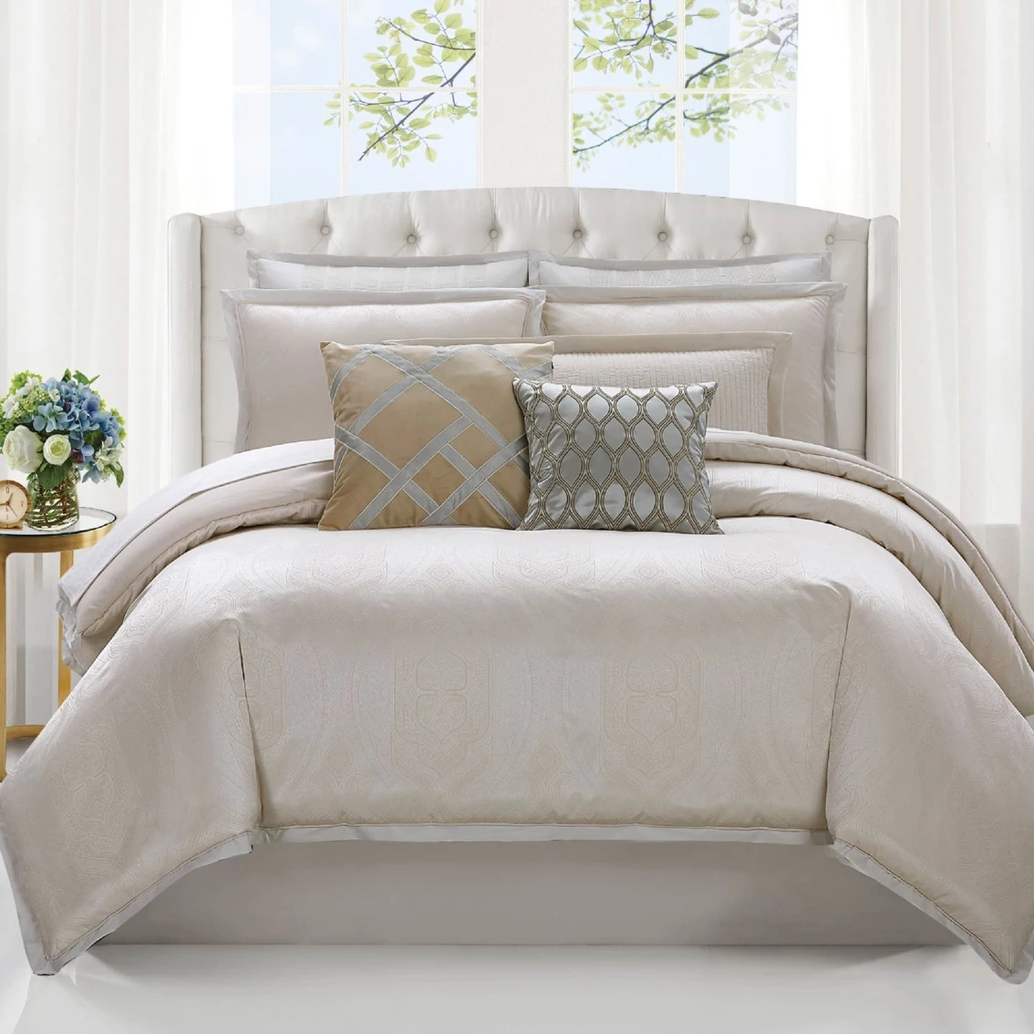 The Charisma Tristano Woven Jacquard 3 pc. Comforter Set is designed to complement most any interior. Featuring 100% polyester jacquard woven fabric and medallion woven face cloth. Model: CS3266QN-1500.