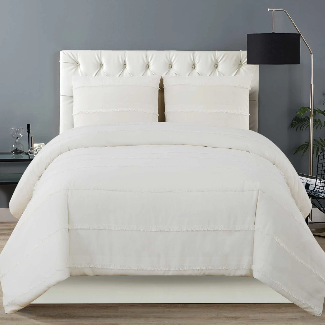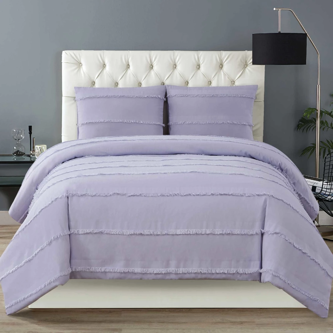 Bring a wink of color and texture into your bedroom with the Kristen eyelash clipped jacquard bedding set from Christian Siriano. Includes one duvet cover 88 x 96 in. with button closure and two standard shams. Face is a pleated 100% microfiber polyester with a 100% polyester reverse fabric. This item is machine washable, but please be sure to use appropriate sized machinery to avoid any excess wear on the items. The item is manufactured and imported from China. Style: DCS3220WTQ.