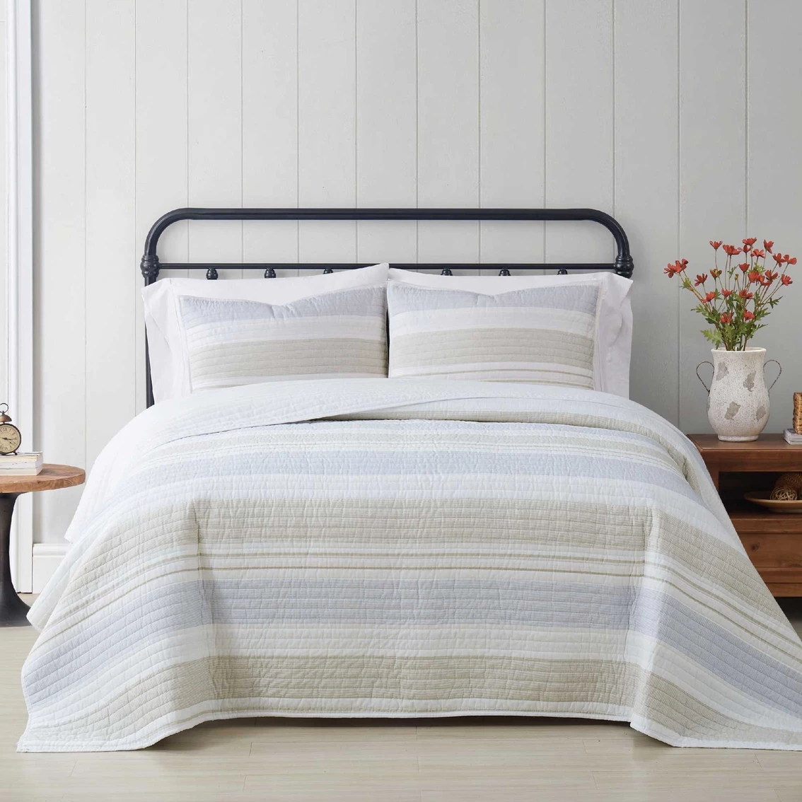 The Cottage Classics Spa Stripe Quilt Set will make your room perfect with a printed textured stripe pattern made from 100% cotton face cloth.