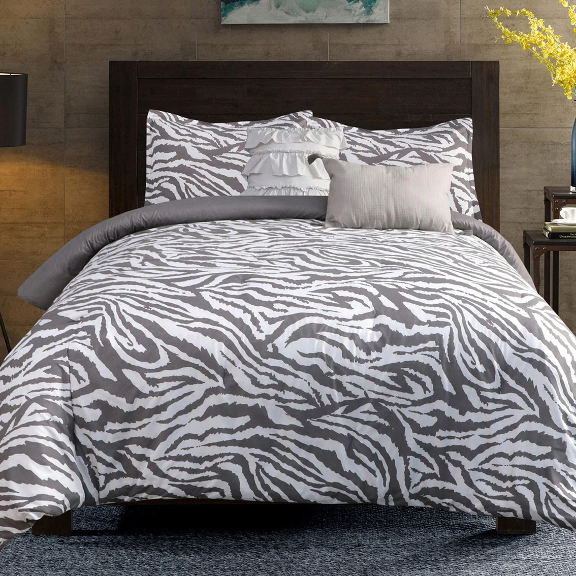 The perfect addition to a bedroom or guest room, the comforter set comes in a variety of colors and prints to complement your existing decor. Naturally breathable and lightweight polyester fabric paired with 100% polyester filling for a perfect all-season bedding. All pieces of set conveniently complement each other to produce a complete and stylish bedding design. Made of durable polyester material, the bedding set is easy to care for and stays looking new, longer. Machine wash on warm, tumble dry on low. Set includes Twin, Full/Queen and King comforter, sham and decorative pillow. Style: EHC6183-US-M.