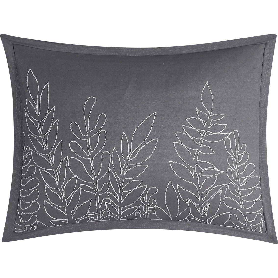 Redefine your master suite and revel in deep slumber by adding this Grand Avenue Alicia Comforter 7 pc. Set to your bedroom. Brimming with minimalist elegance, this comforter set is embellished with a stylish fern pattern set against a monochromatic grey background that complements any modern interior and furniture in the bedroom. Constructed of 100% polyester fabric and filling, this bed set comes with one (1) fluffy comforter, two (2) shams, one (1) solid bed skirt and three (3) opulent pillows that flaunt excellent workmanship and quality. This beautiful comforter is easy to clean and stands up well to machine washing and drying. Model: Alicia7.