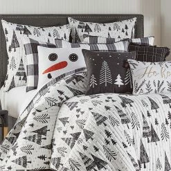 One of Levtex Home’s most popular holiday items, the Northern Star collection is inspired by a contemporary Christmas landscape with a decorative Christmas tree design that reverses to a charming chic buffalo plaid in black and white. The Northern Star Reversible Quilt Set will immediately transform your bedroom. Made with the softest lightweight brushed microfiber, this reversible quilt is machine washable. Bring the holidays home! Model: L19160.