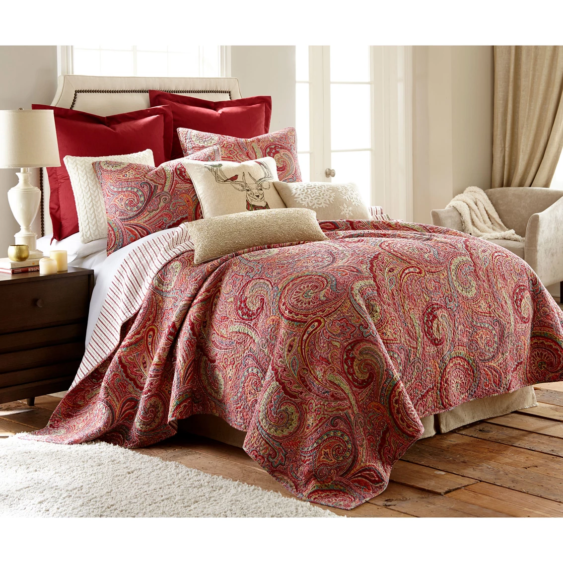 Give your bedroom a lively update with the Levtex Home Spruce Quilt Set. Featuring a fun and unique paisley pattern in deep reds and taupes, this quilt reverses to a deep red stripe pattern on a cream ground. Set comes with matching sham(s). 100% cotton, machine washable, this set will lend a fashionable update to your bedroom. Style: L40803LFQS.