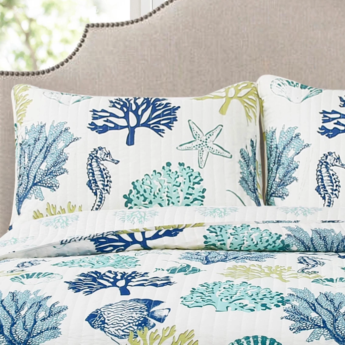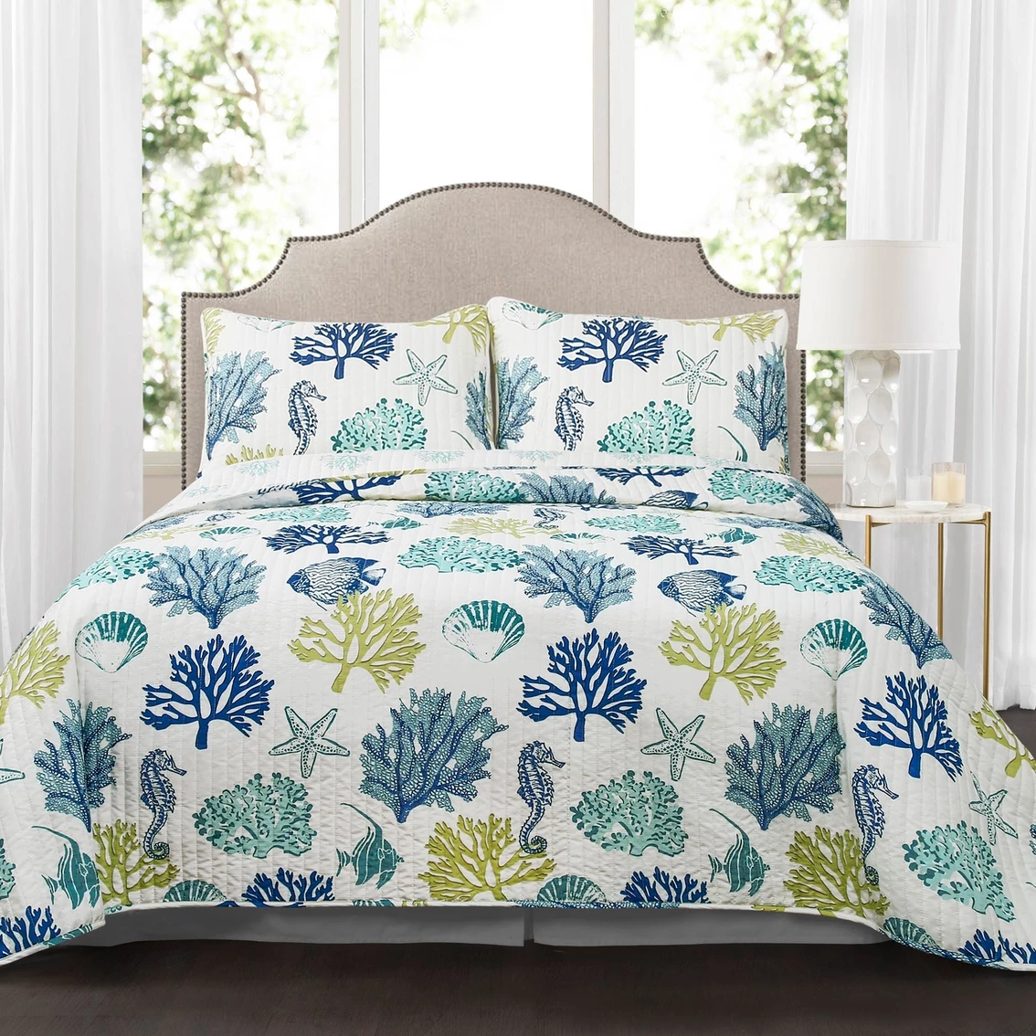 Any beach lover would love this Coastal Reef quilt set from Lush Decor. This makes a great option for your bedroom, a guest bedroom or any room in an actual beach home. The reverse side of the quilt features light colored reefs on a white background. The reversible nature of this quilt gives you the option to switch up the look of your room as often as you like simply by turning the quilt over.
