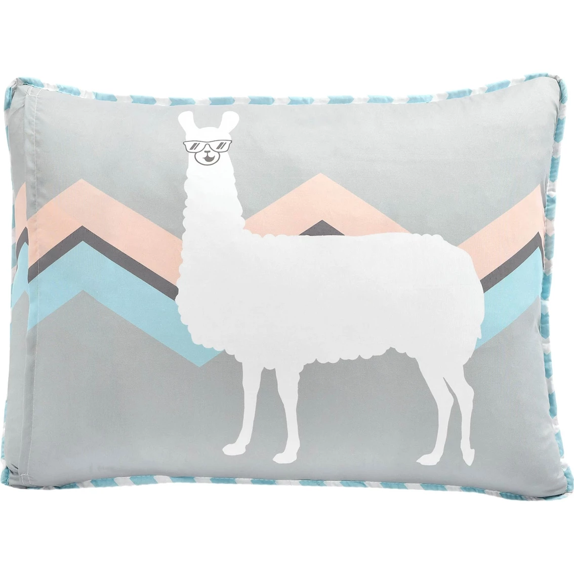 This cool design brings a fun novelty edge to any kid’s or teen’s bedroom. The zig zag chevron pattern sets the perfect background for the cool sunglass-wearing llama. The colors of this Lush Decor Cool as Llama Reversible quilt set create a calming vibe both parents, kids and teens love. Style: 16T006092.