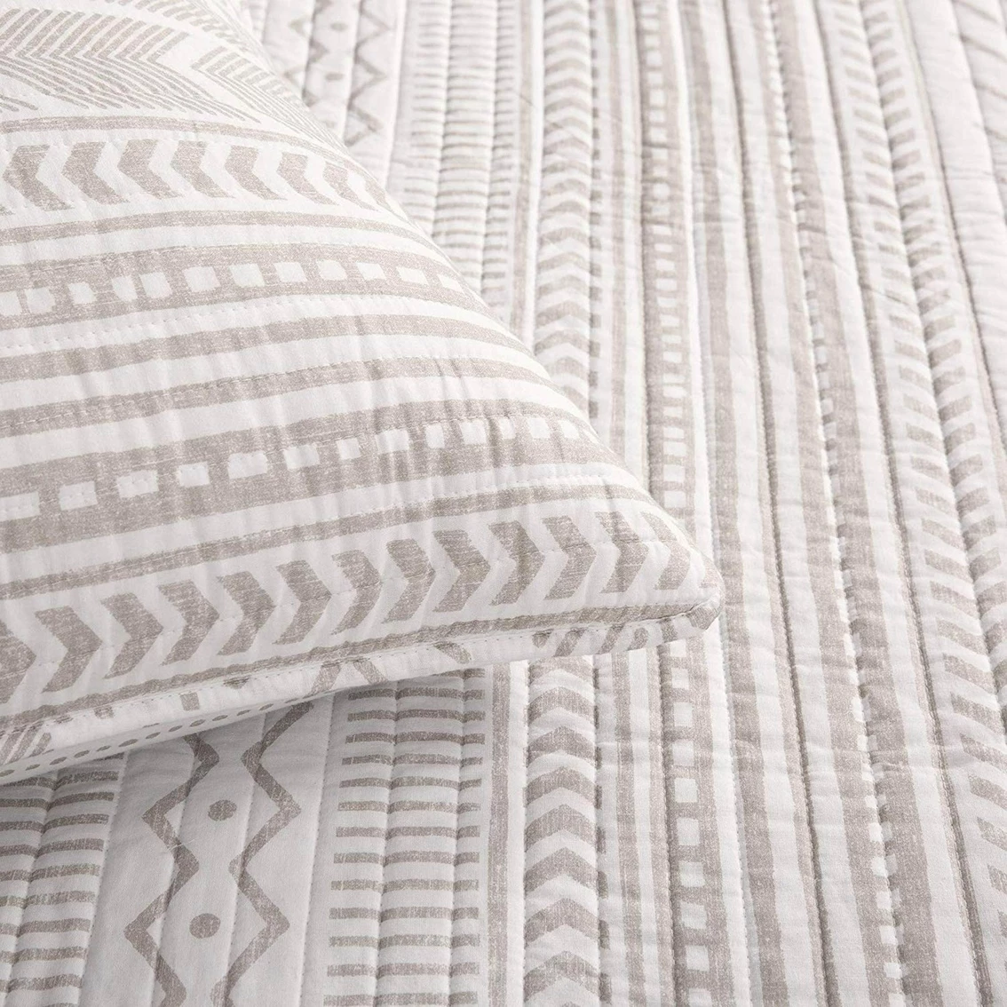 Add Scandinavian style to your home with this reversible quilt set from Lush Decor. It features stripes of various geometric patterns. Use this set to redecorate your master or guest bedroom. This 3-piece set includes a soft cotton quilt and two matching pillow shams.
