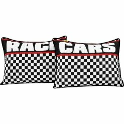 If your child loves to watch fast cars and play vintage car racing video games, this quilt set is perfect for their first big kid bedroom. The front features colorful cars crossing the finish line, while the reverse is the print on the checkered flag. Set includes: 1 quilt, 2 pillow shams and 2 unique decorative pillows.