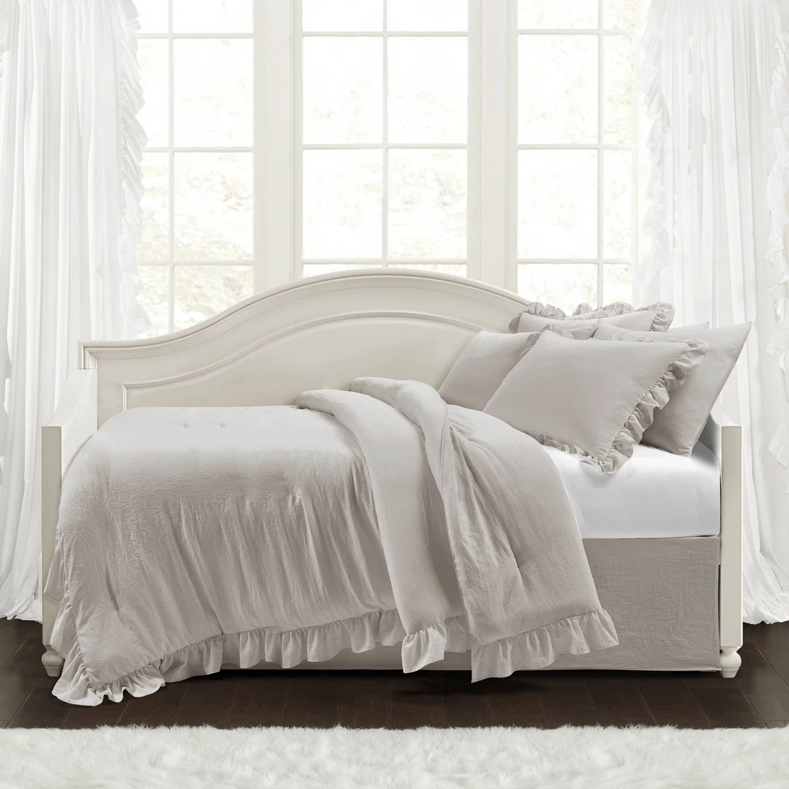 This lovely Lush Decor daybed comforter set with frilly ruffled border brightens any space. The ruffles on the comforter and the pillow shams create a whole new dimension for your space. This set truly combines fashion with function for your bedroom makeover. Set includes 1 daybed cover, 2 pillow shams, 2 pillow cases and 1 bed skirt. Style: 16T005501.