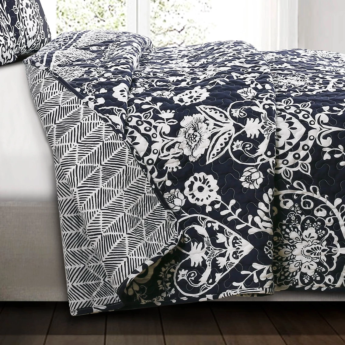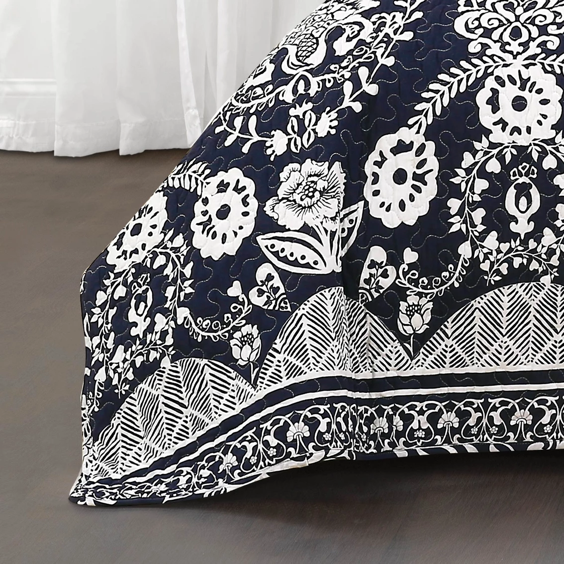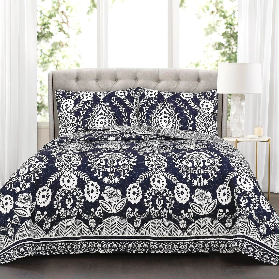 This reversible quilt set from Lush Decor is printed on 100% cotton will add that “wow” factor to your master or guest bedroom. The bold design has the feeling of an ornate chandelier with flowers and vines. Two matching pillow shams to complete the look. Model: 16T002732.