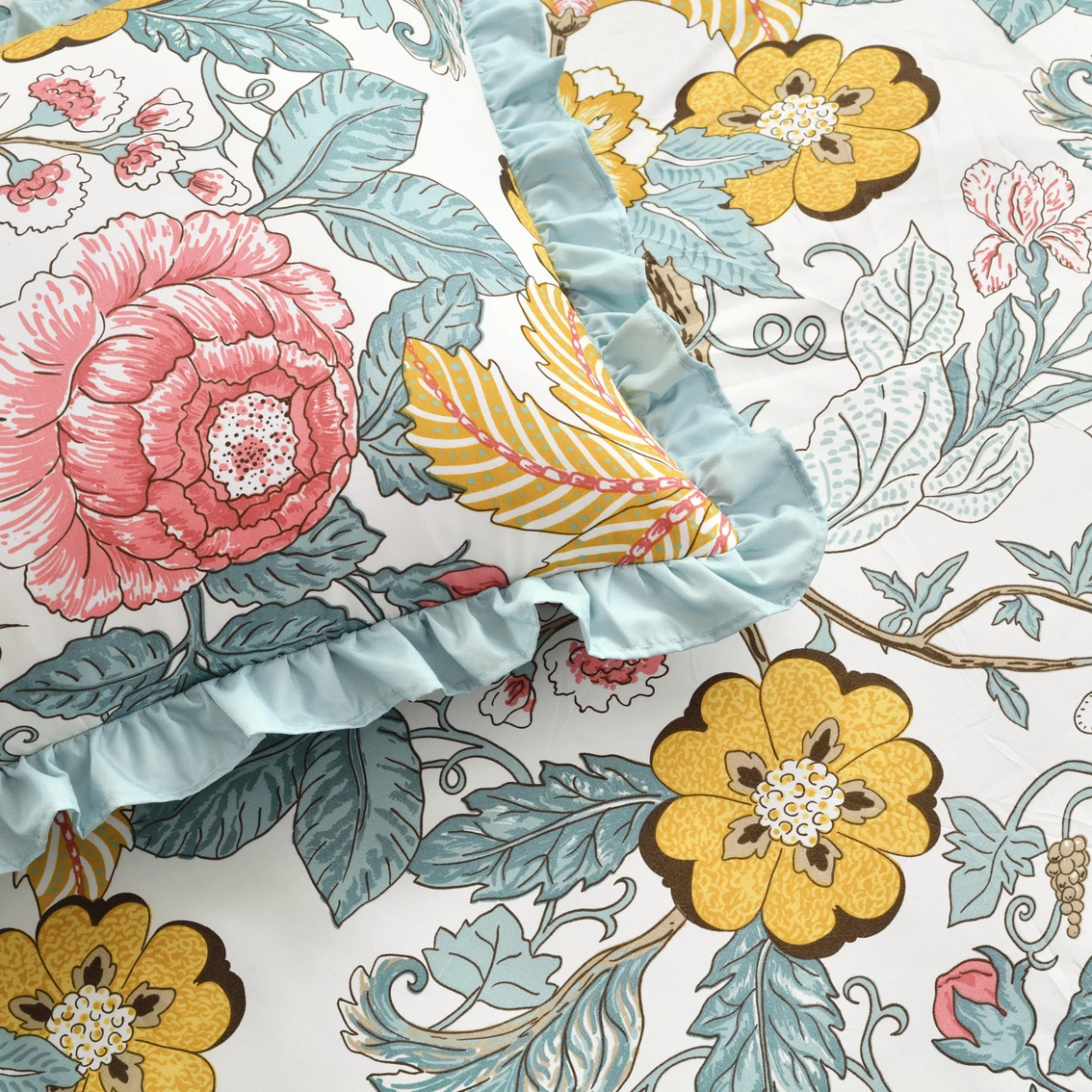 This bedspread set from Lush Decor is the perfect piece to update your master or guest bedroom with vintage beauty and country cottage style. The colorful floral print adds life to any room and the ruching and ruffles add a chic vibe. Available in queen or king size. This set includes 1 bedspread and 2 pillow shams. Style: 16T005384.