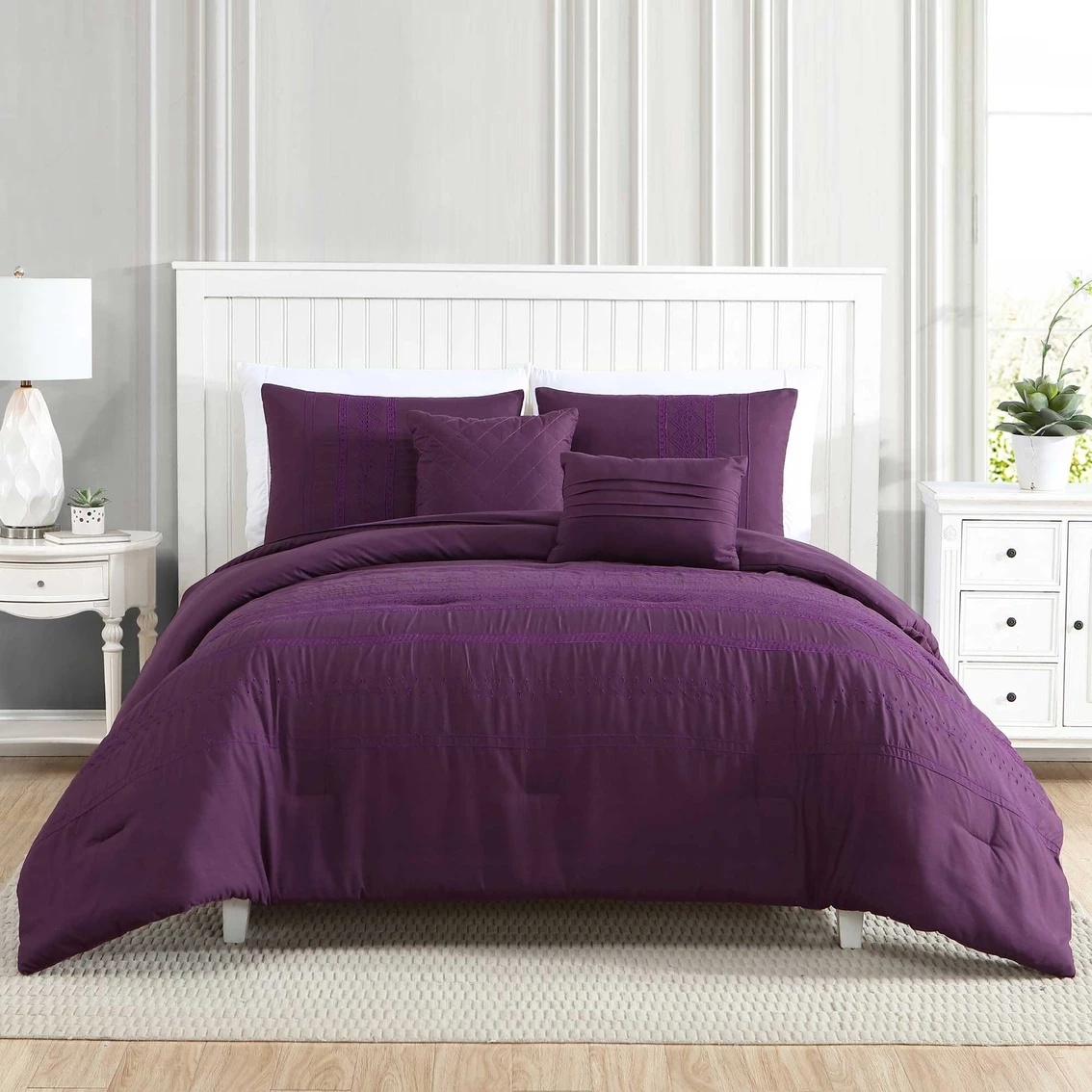 Indulge yourself in spa-like luxury with thisMarie Claire Ada 5 pc. Comforter Set. The polyester filling gives just the right fluffiness to this comforter set while the bar tacking details give a more formal finished look. The luxuriously silky brushed microfiber material is constructed using techniques that include better stitching, stronger weaving and softer materials; Ensuring a durable and soft touch. Fashion meets luxury with this set and is the perfect solution to your decorative and comfort needs. Model: 3MLTICSE-ADA.