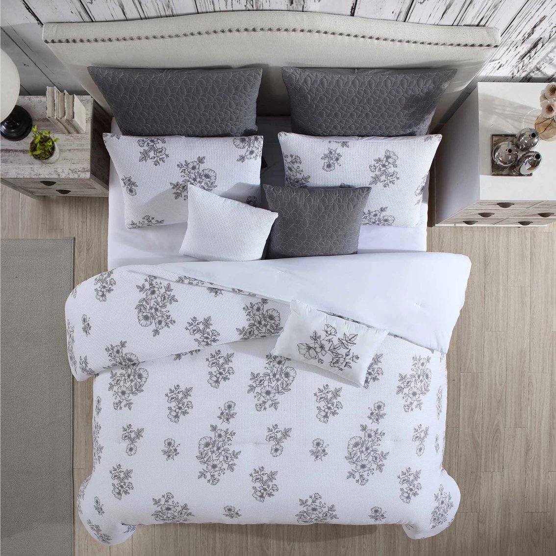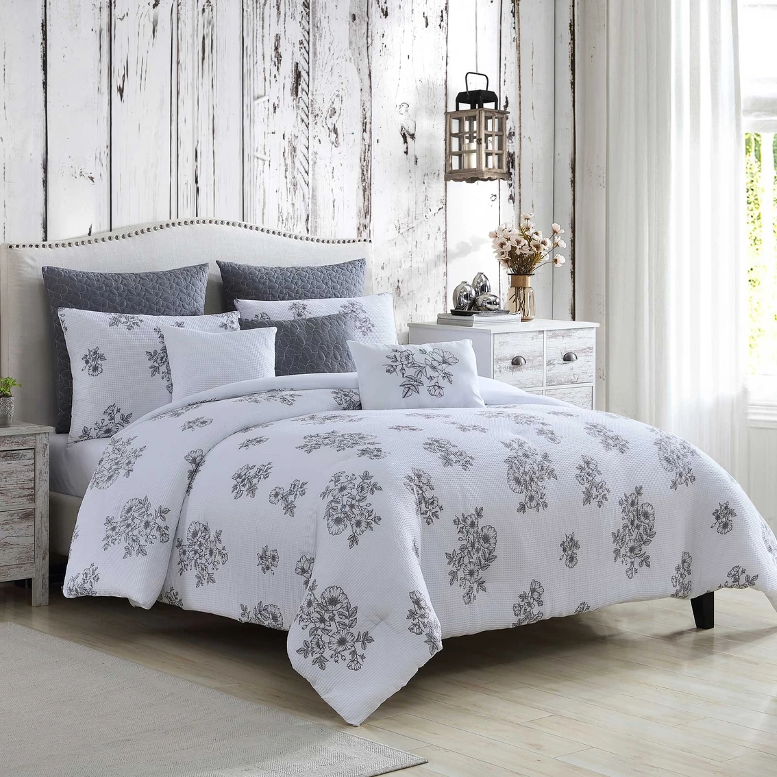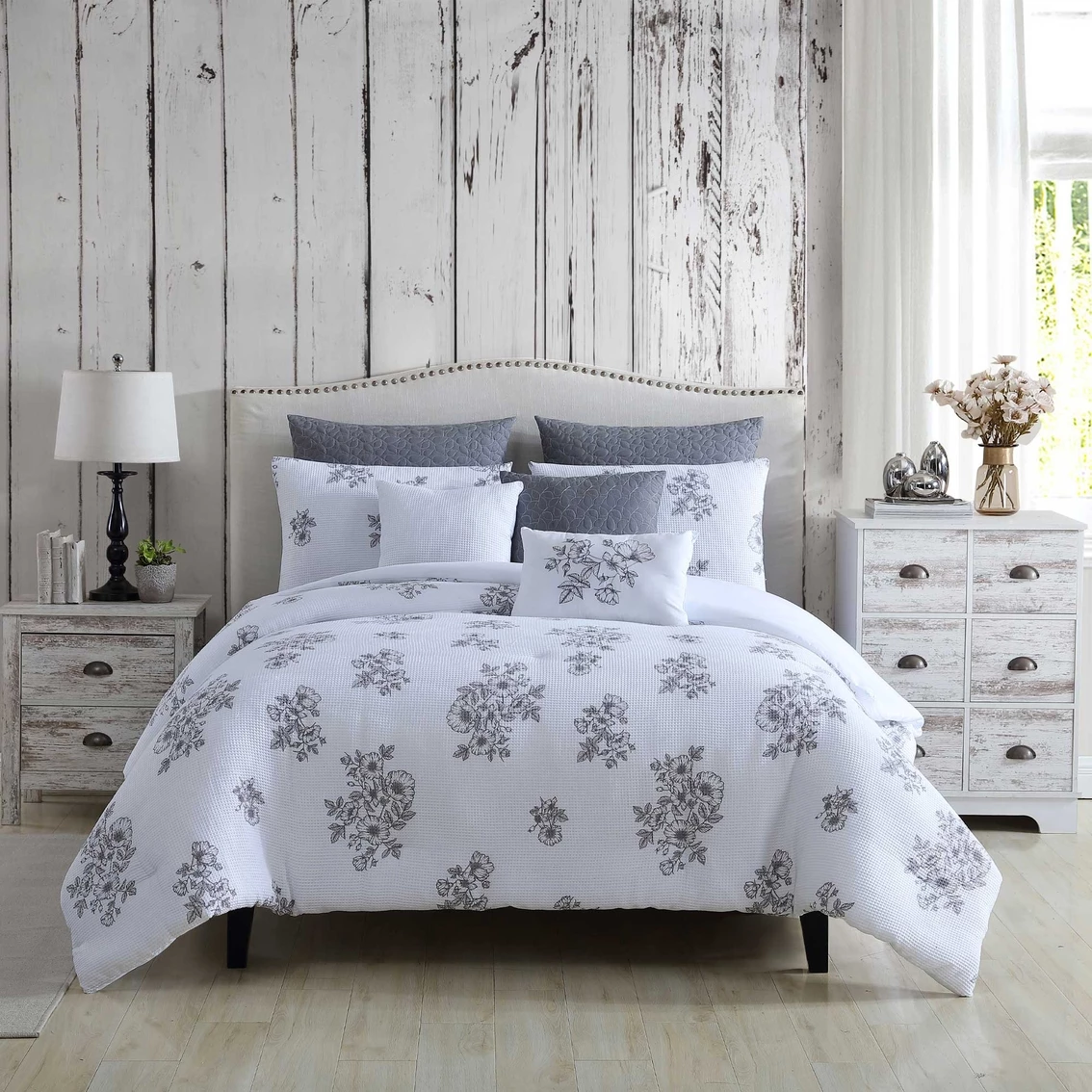 Indulge yourself in spa-like luxury with this Marie Claire Alexa Floral 8 pc. Comforter Set. The polyester filling gives just the right fluffiness to this comforter set while the bar tacking details give a more formal finished look. The luxuriously silky brushed microfiber material is constructed using techniques that include better stitching, stronger weaving and softer materials; Ensuring a durable and soft touch. Fashion meets luxury with this set and is the perfect solution to your decorative and comfort needs. Model: 3MLTICSE-ALX.