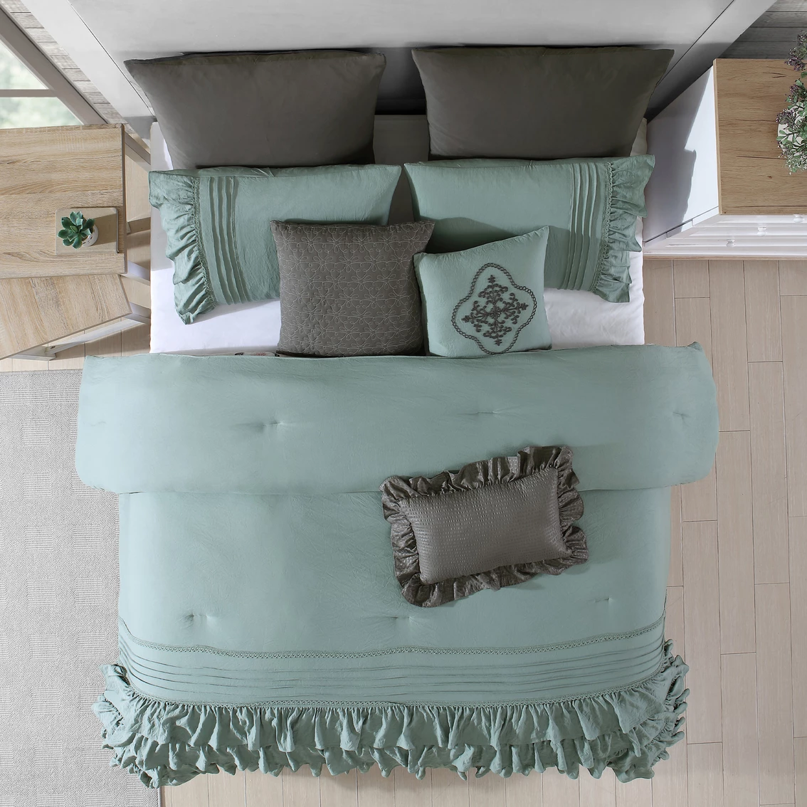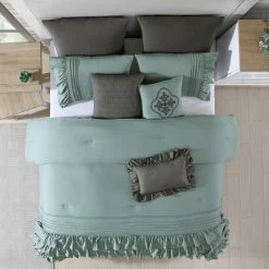 Indulge yourself in spa-like luxury with this 8-Piece Chloe Comforter Set from Marie Claire. The polyester filling gives just the right fluffiness to this comforter set while the bar tacking details give a more formal finished look. Marie Claire’s luxuriously silky brushed microfiber material is constructed using techniques that include better stitching, stronger weaving and softer materials. Ensuring a durable and soft touch. Fashion meets luxury with this set and is the perfect solution to your decorative and comfort needs.