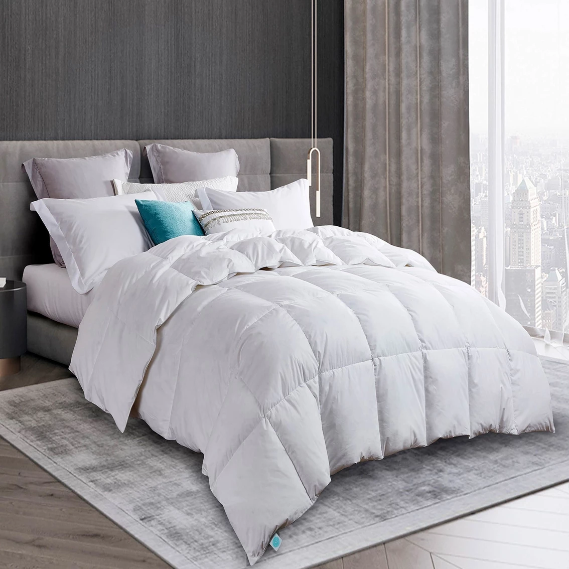 – Hypoallergenic, all-natural blend of 50% White Goose Down/50% White Goose Feather fill