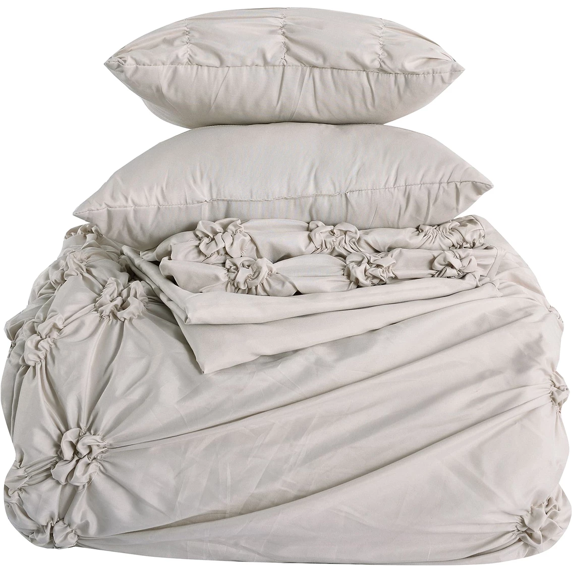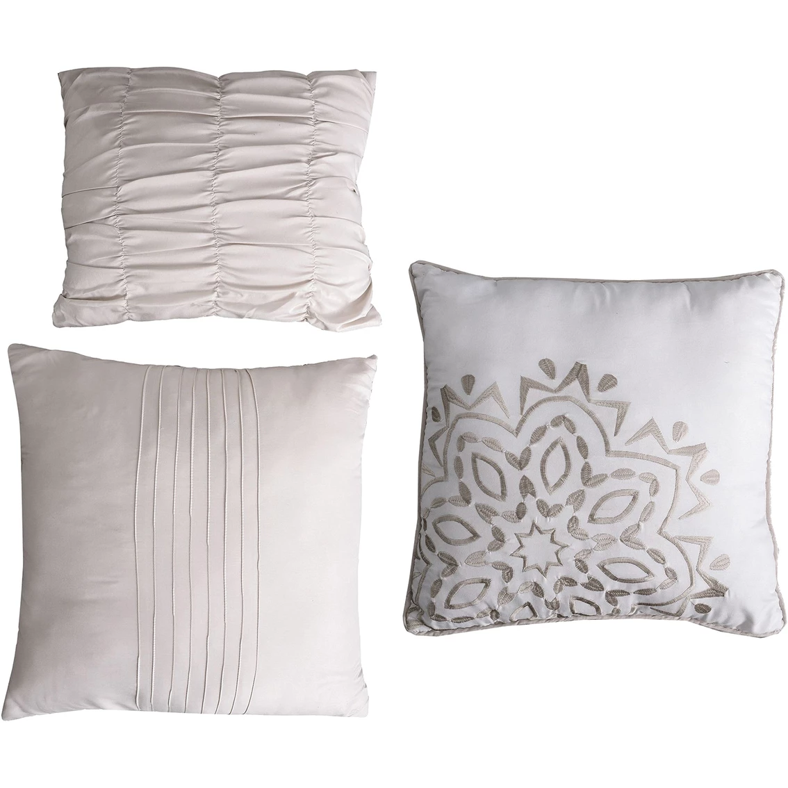 Indulge yourself in spa-like luxury with this 8-Piece Comforter Set. The polyester filling gives just the right fluffiness to this comforter set while the bar tacking details give a more formal finished look. The luxuriously silky brushed microfiber material is constructed using techniques that include better stitching, stronger weaving, and softer materials; Ensuring a durable and soft touch. Fashion meets luxury with this set and is the perfect solution to your decorative and comfort needs. Style: 38EBJQCF-MRG-QN.