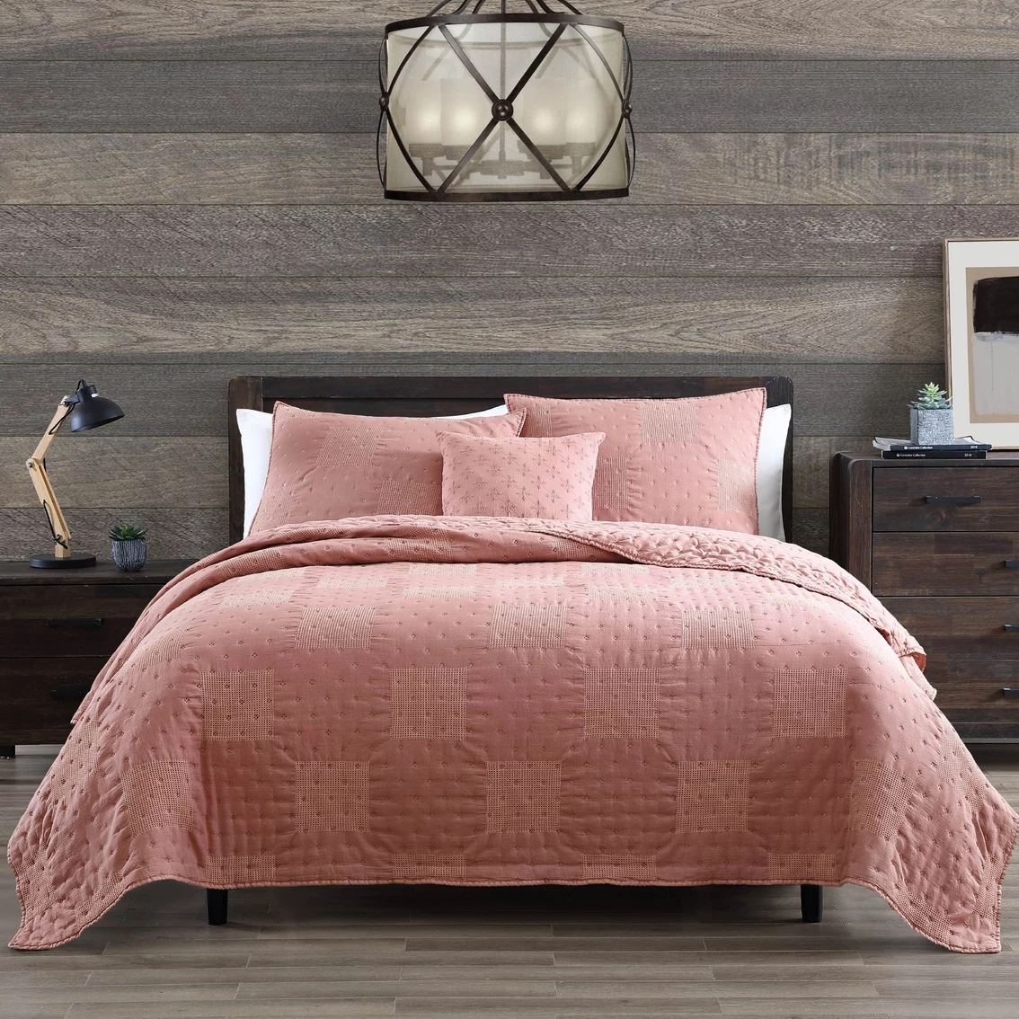 Brighten up any bedroom with this colorful quilt set from Modern Threads. The set includes a quilt, two shams and one decorative pillow for a totally harmonized design. Mix and match the solid and patterned pillows against the solid or patterned side of the reversible quilt to create different coordinated looks. The super-fine fibers that make up our quilt are densely packed into the fabrication of the quilt, making it extra fuzzy and soft. Extra lightweight brings you feeling of comfort and freedom. Made of 100% polyester, the quilt is machine washable for easy cleaning. Style: 3QLTCHSE-IBR.