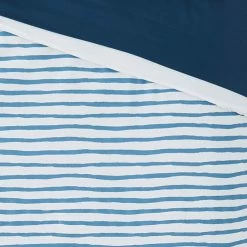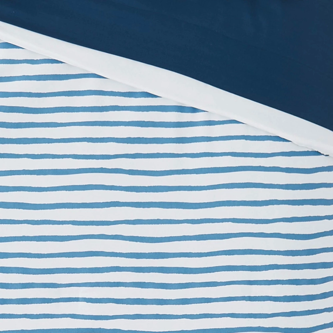 A simple wave print provides a home for your aquatic friend in this My World Happy Shark Bed in a Bag 7 pc. Set. The amusing set includes all your bed needs. The comforter features a minimal blue-on-white wave print with a solid white reverse. The pillow sham(s) feature a friendly shark face print with an attached fabric fin to bring it to life. This set includes sheets and pillowcase(s) in a coordinating deep sea blue. All items are made of a microfiber polyester and the comforter has a polyester fill. This set is CPSIA Certified Safe, which means it is lead free and phthalate free so your little one will not just have fun, but also be secure. Model: BIB4802QN-3200.