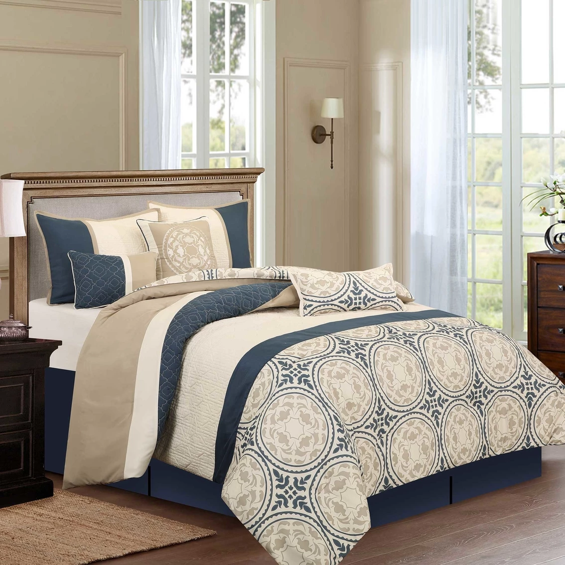Nanshing Camila 7 pc. Comforter Set. Add a unique touch to your bedroom decor with this Large Medallion print comforter ensemble in soothing neutral shades. This seven-piece set includes everything you will need to outfit your bed with style. With this top quality and affordable bedding collection you will find yourself getting a restful night of sleep all year long. Model: CAMILA.size/color.