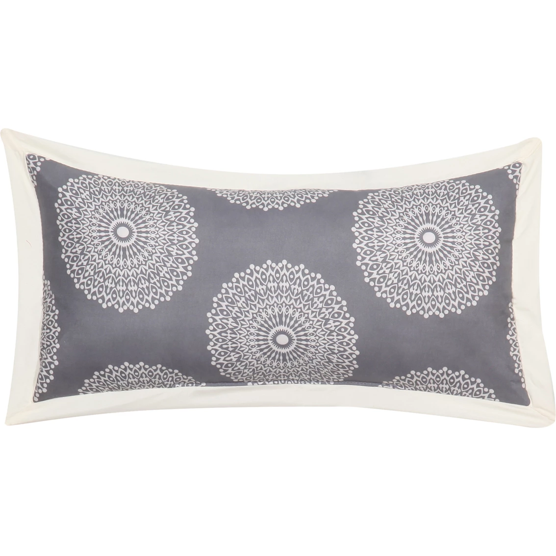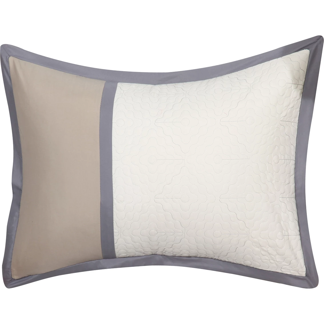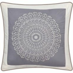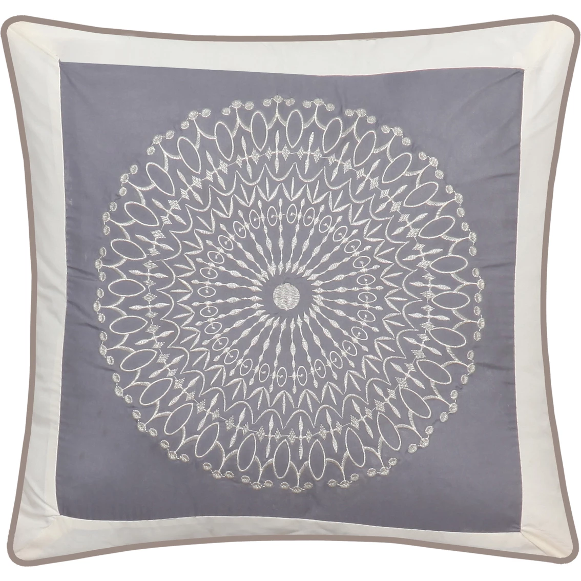 Create an elegant retreat in you bedroom with this 10-piece comforter set from Nanshing. The set features a lovely color pallet, intriguing designs, quilting and color blocking on the pillows. The bedding set includes a comforter, bedskirt, two standard shams, two euro shams and four decorative accent pillows. Style: Dante10-Q.