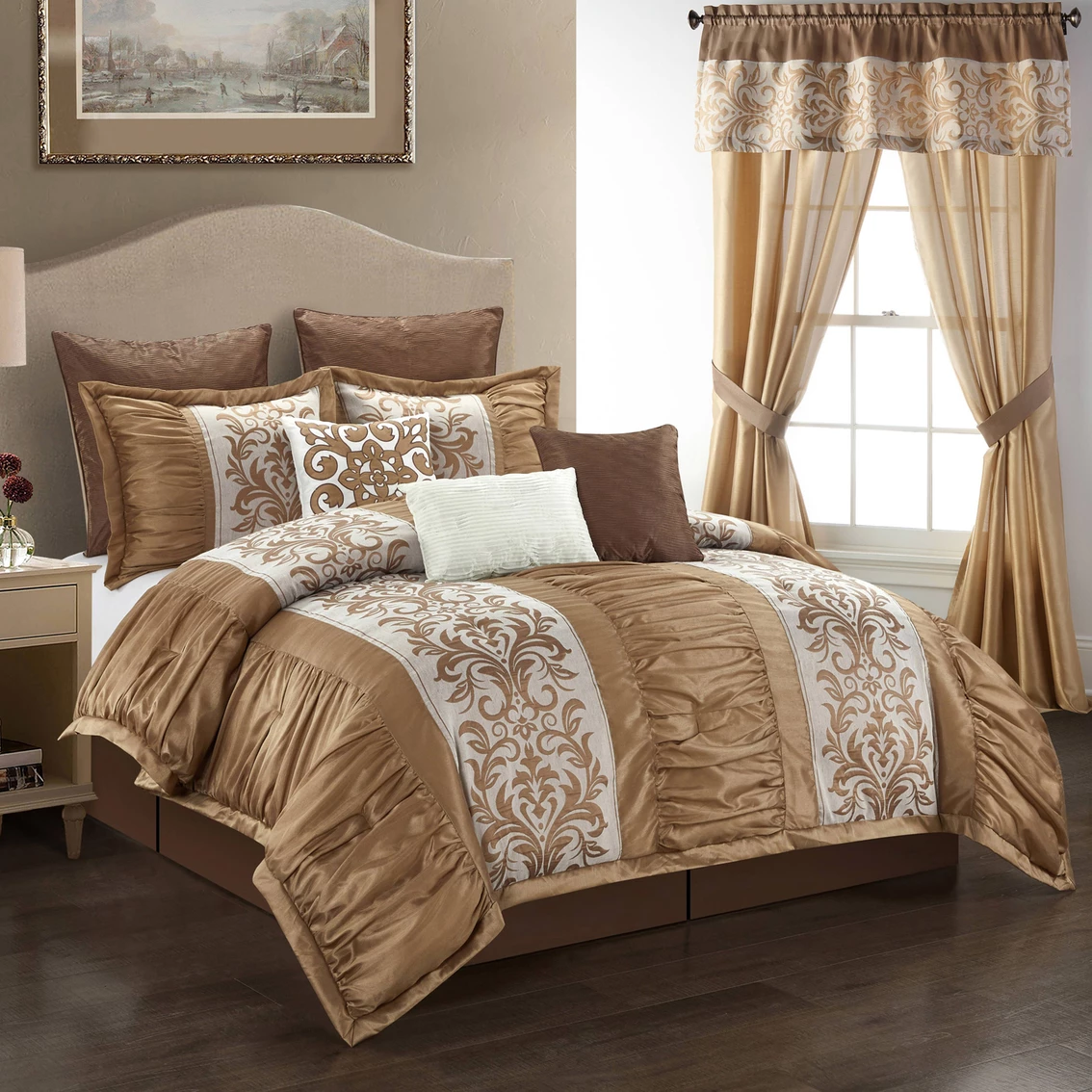 Nanshing Liberty 9 pc. Comforter Set. Get the elegant sophisticated look you’ve been searching for with this beautiful Comforter Set from Nanshing America Inc. The stylish and beautiful white embellished pleat puffed design with jacquard motives is guaranteed to elevate your bedroom decor. Model: Liberty9/size.