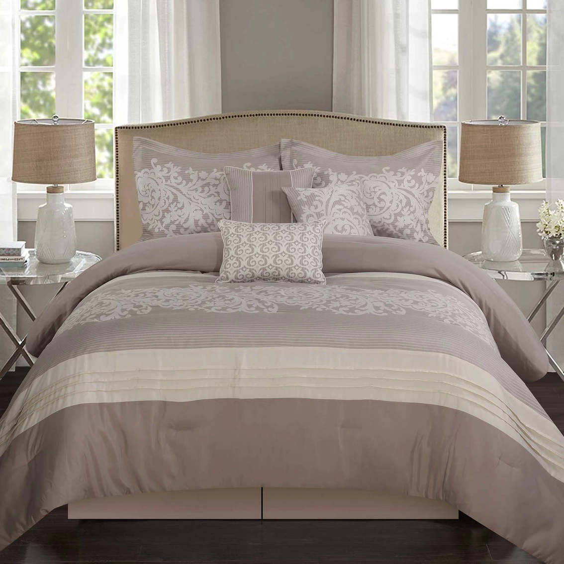 | Includes | Set Includes: (1) Comforter, (2) Pillow Shams, (1) Bedskirt, (3) Decorative Pillows |