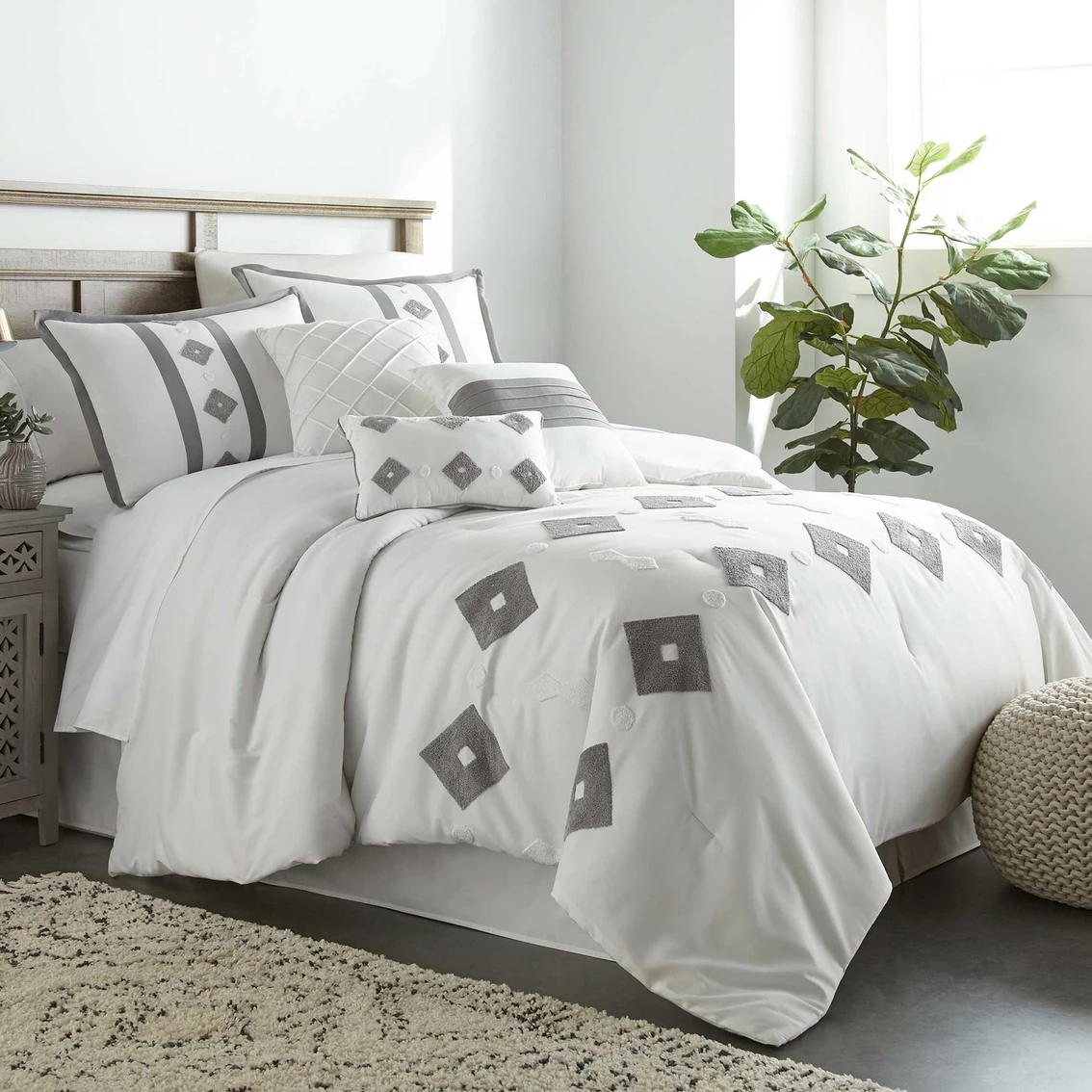 | Includes | Set Includes: (1) Comforter, (2) Shams, (1) Bedskirt, (3) Decorative Pillows |