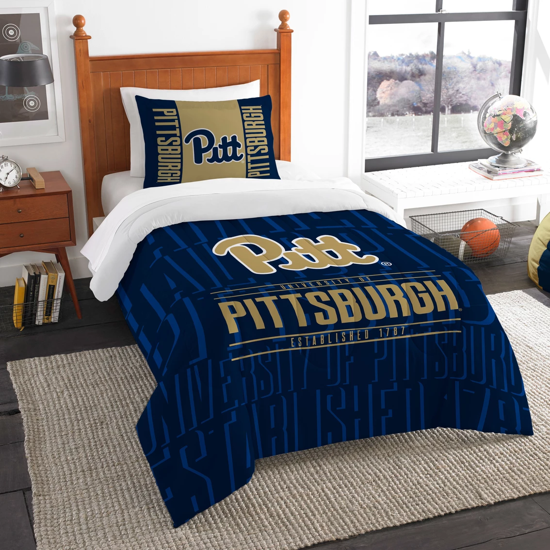 Add a twist to your bedroom or dorm room with this officially licensed NCAA Modern Take Comforter Set by The Northwest Company. This super cozy and soft printed set is designed with your favorite school’s logo in the center of the comforter and the shams. The background shows off a bold, repeating print of your college with an extra added side color panel and the established date. You will never want to get out of bed! Comforter shell and shams are 100% polyester. Full/Queen sets include 86 x 86 in. comforter and two 24 x 30 in. shams. Twin sets include 64 x 86 in. comforter and one 24 x 30 in. sham. All teams may not be available.