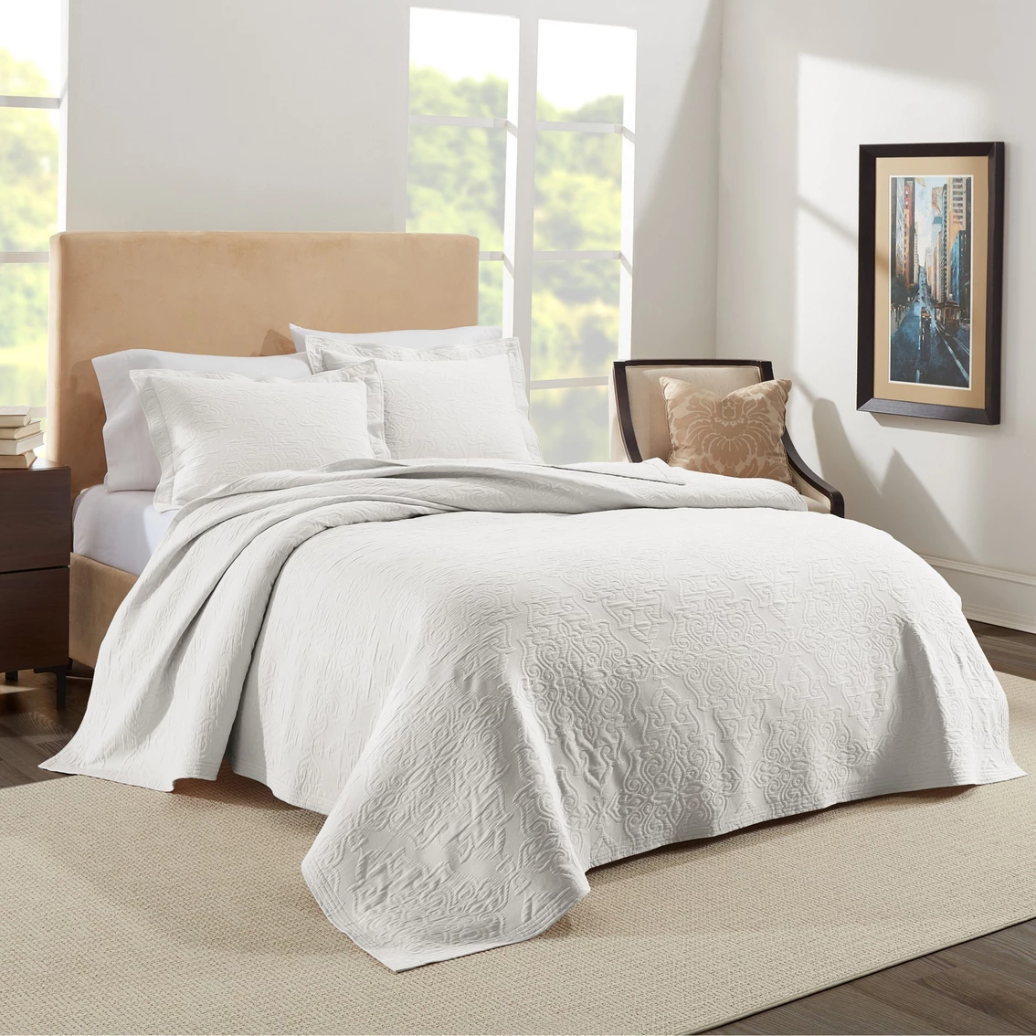 The Raphaela Coverlet Set is a vintage inspired matelassé that will add elegance to any home. With muted color options and classic design this set will be the perfect addition to any bedroom. Crafted in Portugal from 100% combed cotton for extra softness, this textured coverlet set will last for years to come. Style: M2.