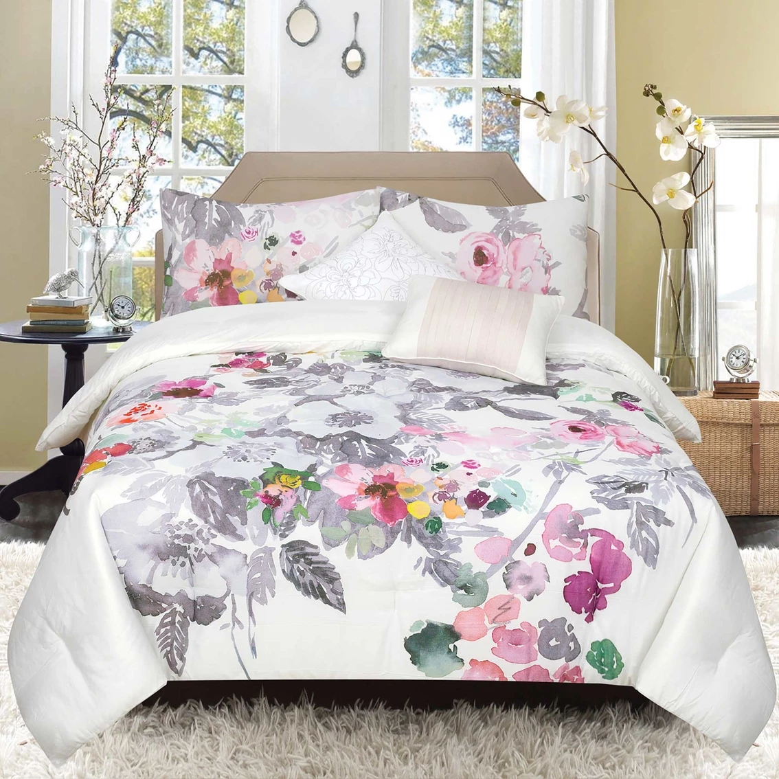 Create a relaxing garden oasis feel in your bedroom with this Royale Linens Brighton Watercolor Floral 3-piece Comforter Set. Soothing bedroom decor designed for anyone’s bed, from first apartments to master bedrooms and even college dorms. Twin, Full/Queen and King sets include comforter and two standard shams (one sham for Twin). 100% cotton. Style: 09A92F43.