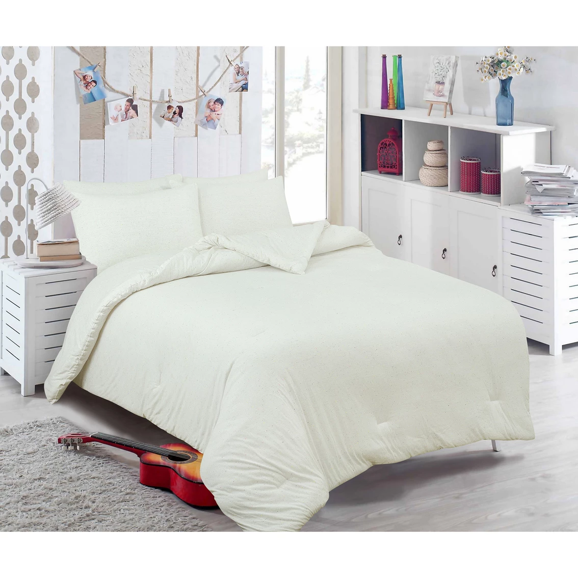 A solid comforter with a subtle pop of color that will freshen up any space. This comforter is made of ultra-soft cotton jersey knit fabric with brightly colored threads knit into it to create a confetti sprinkle look all over. This Royale Linens bedding set is perfect for a dorm room and would also look great in your kid’s rooms, teen’s rooms, and even your master bedroom. Super soft cotton and rich jersey knit will keep you cozy all night. Set includes comforter and two shams. Style: 09A92F50-042-0997.