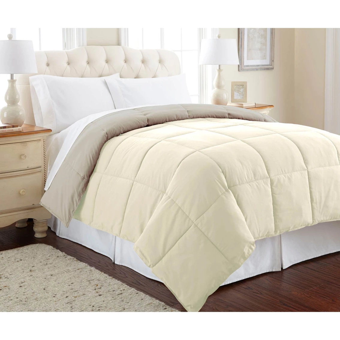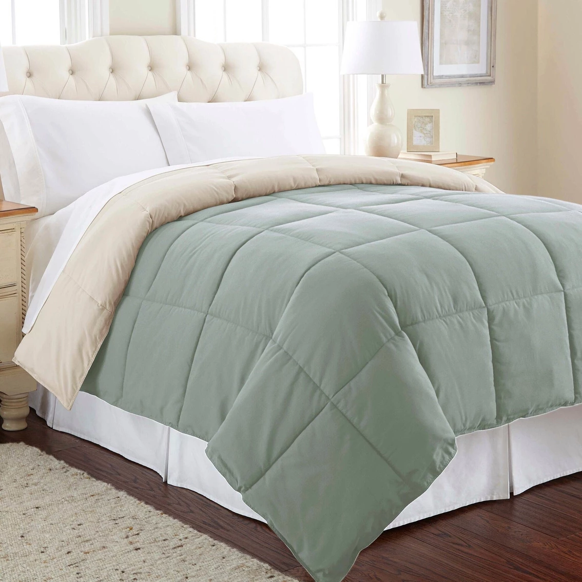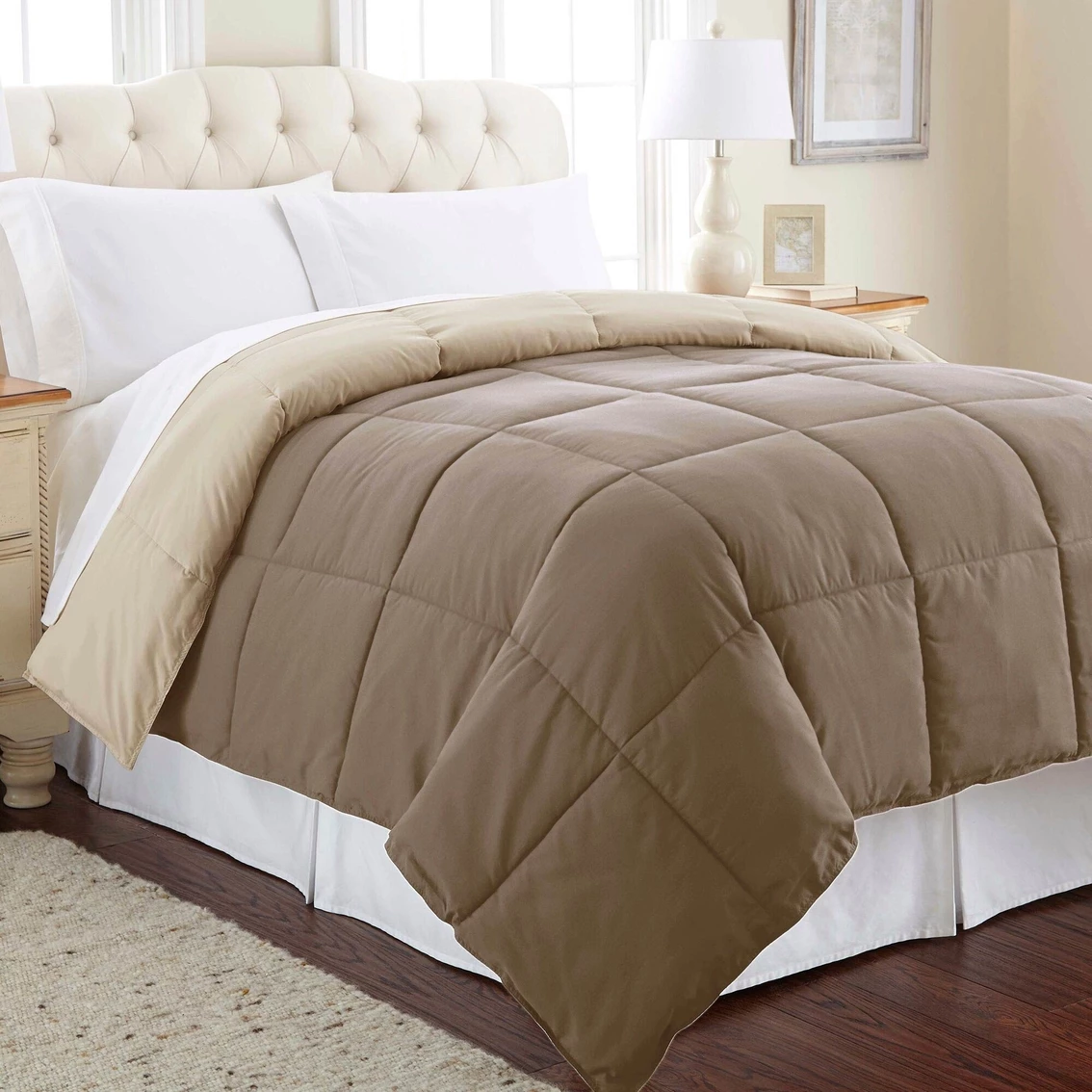 Keep warm all year round with the Amrapur Overseas Reversible Down Alternative Comforter by Sanctuary. This comforter features a polyester construction with hypoallergenic down alternative fill. With a reversible design and multiple color options this comforter allows for different looks to your bedroom. The box construction helps keep the fill in place and prevents bunching. Machine washable. Style: 2DWNCMFG.