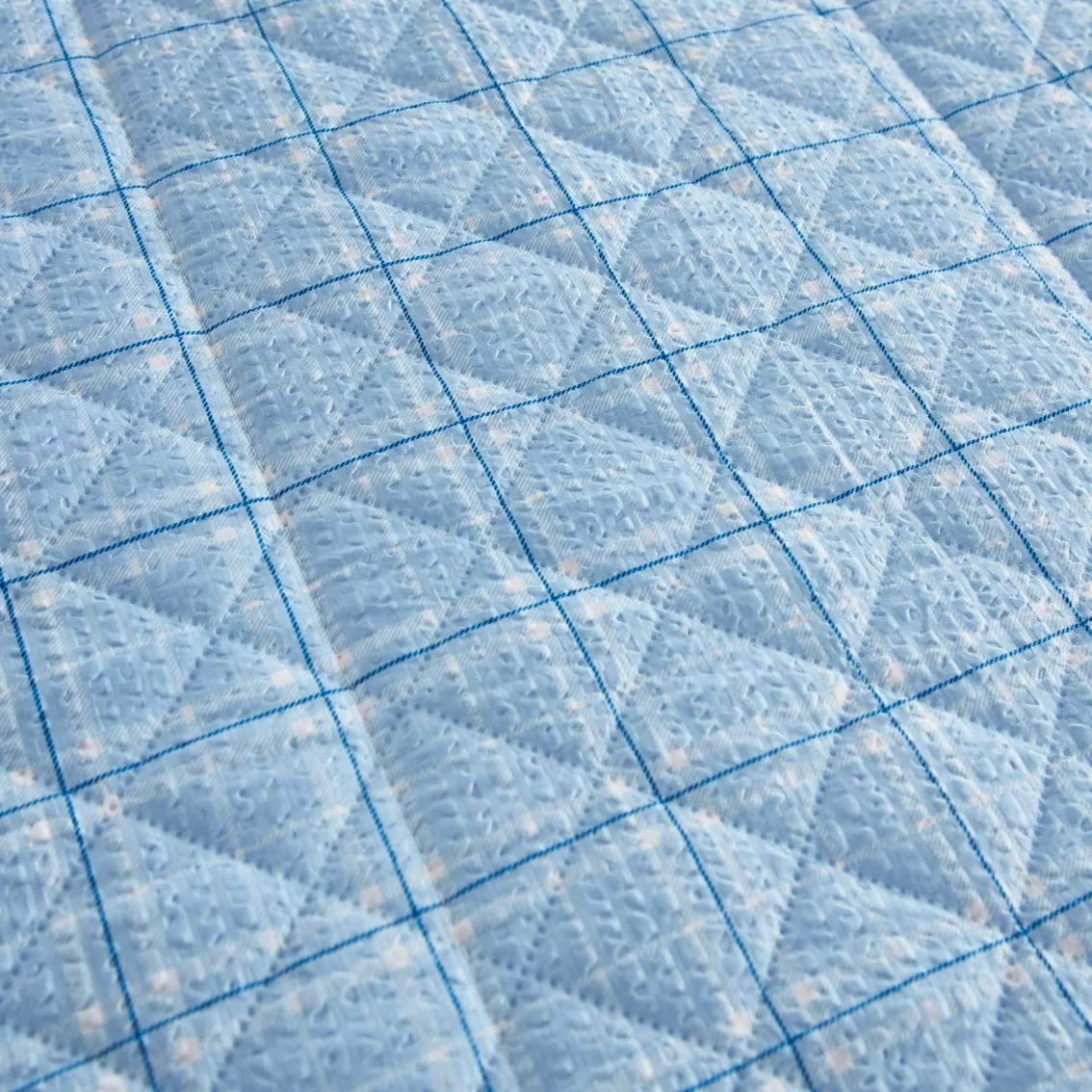 Shavel Seersucker 6 in 1 Quilt Sets create a relaxing and tranquil atmosphere in your bedroom. The 6 possible design combinations from this carefully engineered quilt allow total ease of care and many possible refreshing design statements in your room. Crisp and cool, the textured seersucker enhances the refreshing Spring and Summer feel of this exceptional fabric. Stylish and modern, the printed designs and cool toned palette add life and beauty to your bedroom. Perfect for welcoming Spring and Summer. Seersucker is also great for shore, lake, and beach. Easy care, seersucker resists wrinkling and is machine wash and dry. Includes 1 Quilt, 1 Sham for Twin size, 2 Shams for Full/Queen and King sizes. Model: SERQSFQCPB.