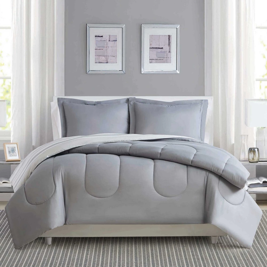 This Hilcrest comforter set from Style 212 is the perfect statement piece for any room. Cool-toned stripes will let you explore great design without straying from a modern look. Each set includes one comforter and two shams. Style: CS3366FQ-1540.