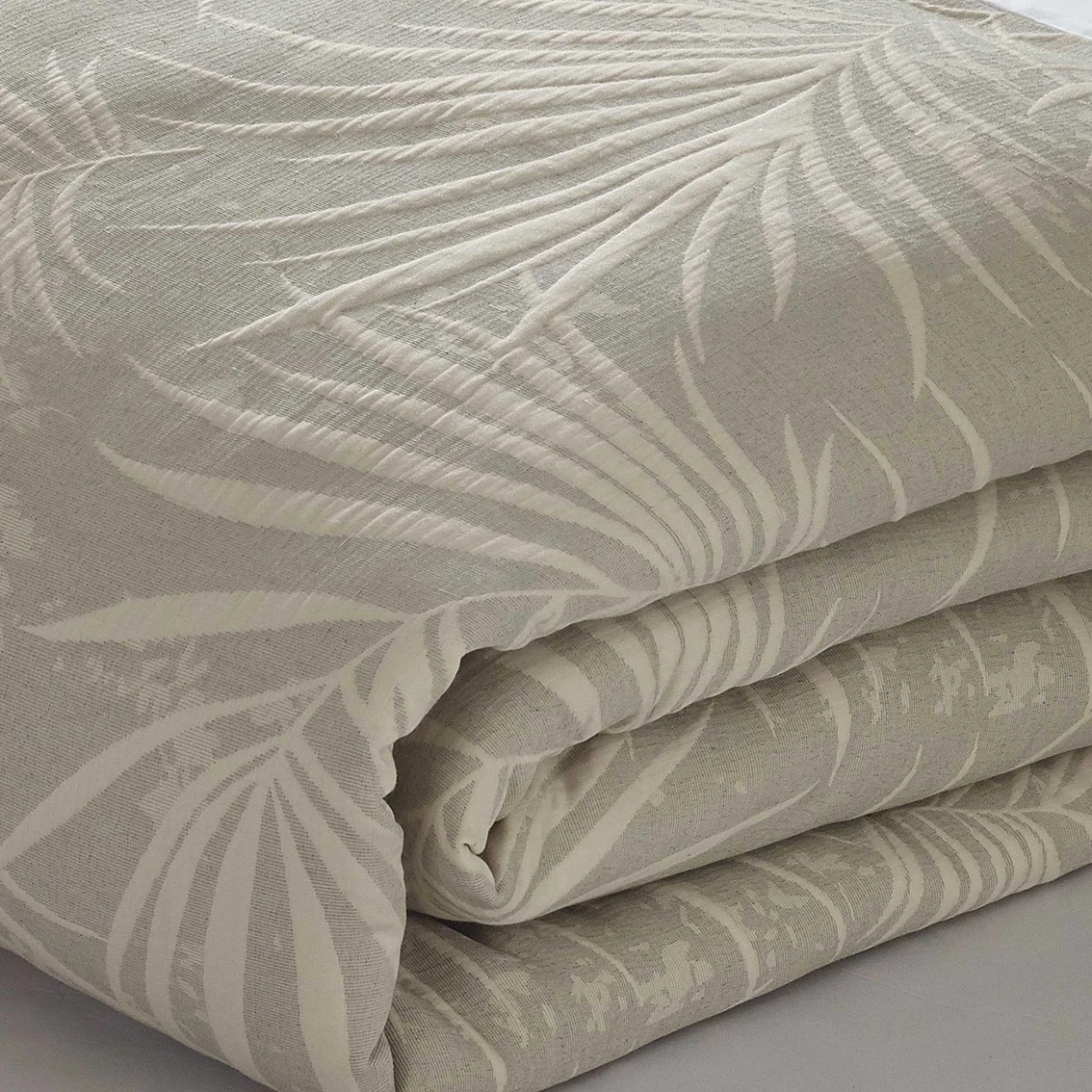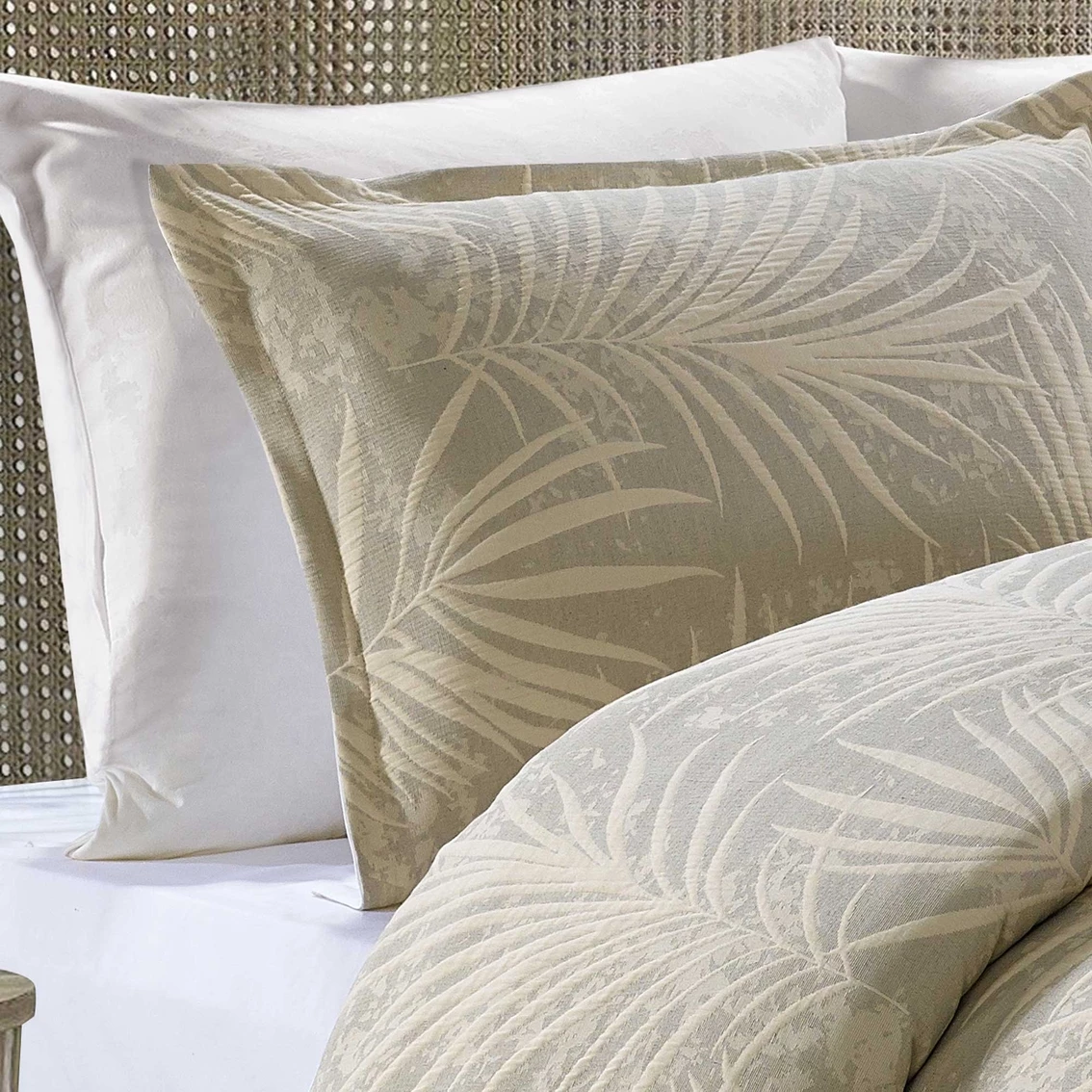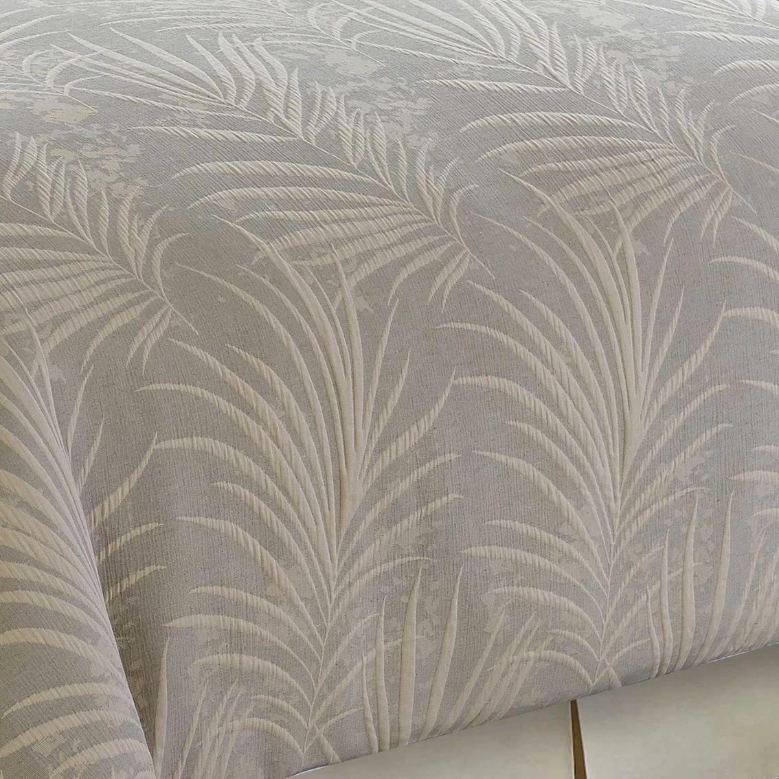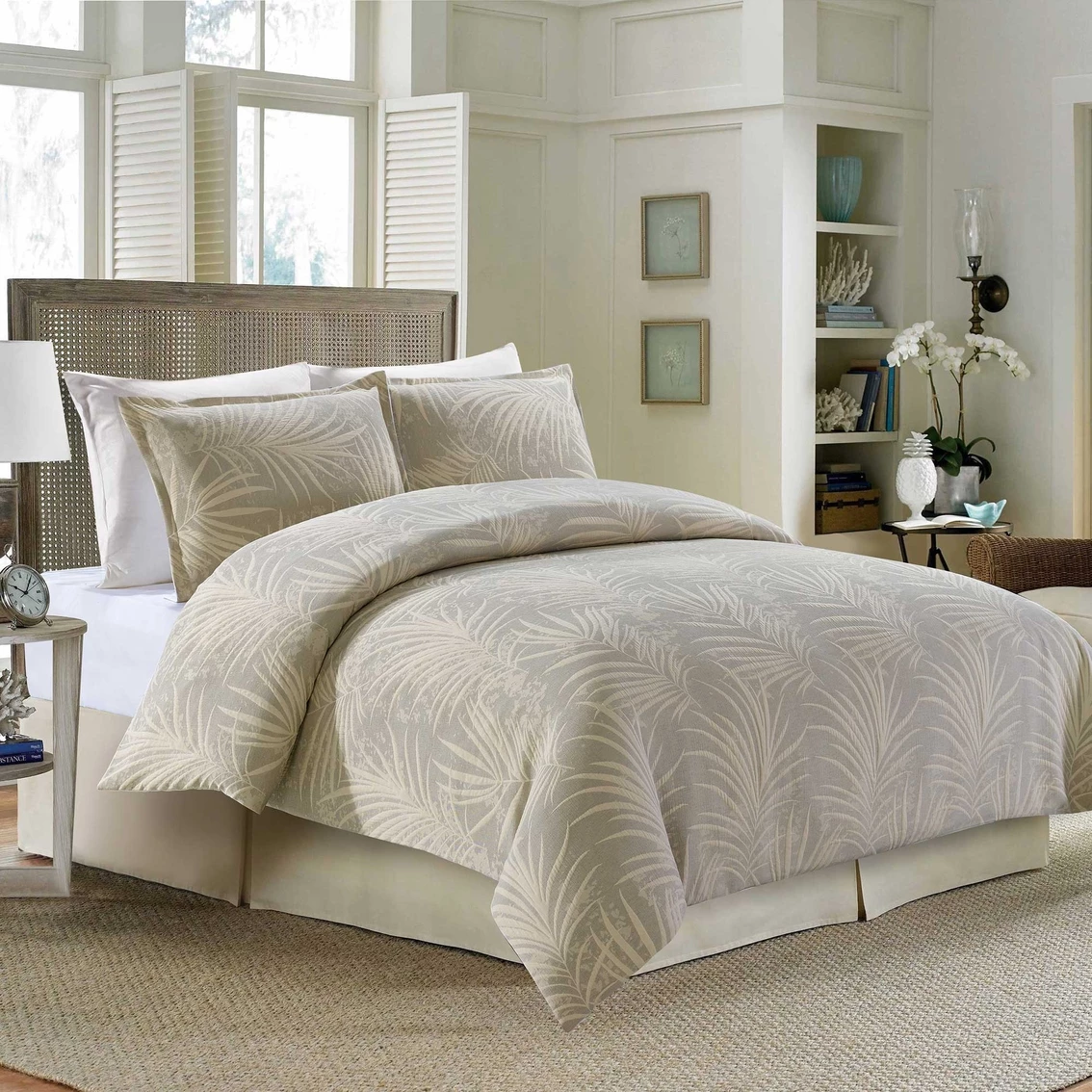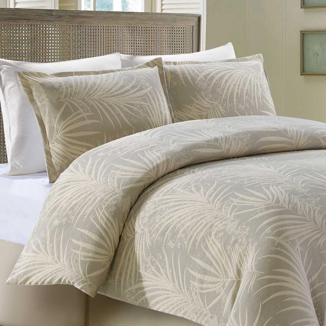 Create a tropical oasis in your bedroom with the Bali duvet set from Style Quarters. Tonal palm leaves tossed all over create a soothing bedroom that makes you feel like you are on vacation year-round. The pillow shams feature a coordinating tossed palm leaf design. This queen duvet set includes a duvet cover (90 in. W x 90 in. L) and two standard pillow shams (20 in. W x 26 in. L). Made of 98% polyester/2% cotton, this set is machine washable for easy care. Model: A-BALIQ-DV.