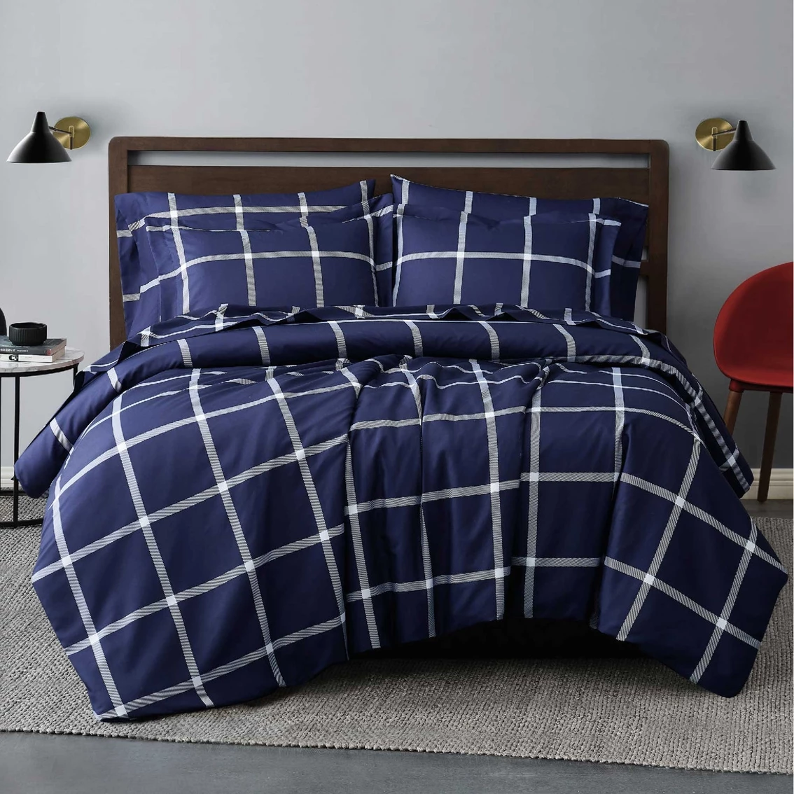 The medium scale windowpane pattern in this duvet cover set from Truly Soft is a perfect coordinate to any busy room, or if you are looking for a modern look in 100% microfiber polyester. Face and back is made from 100% microfiber polyester woven in a percale weave and printed. Model: DCS3860WCG.